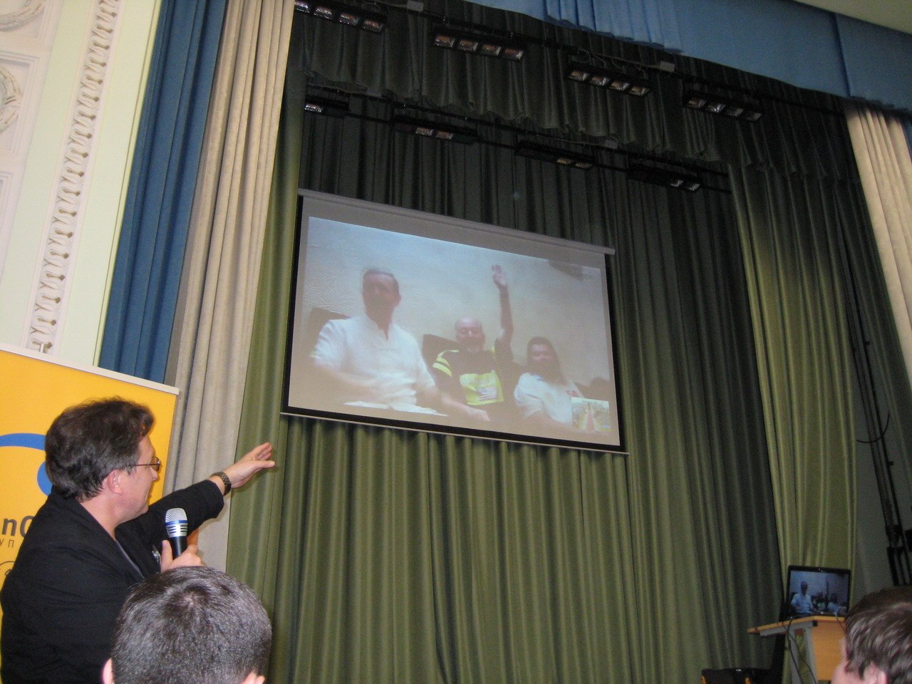 На открытии необычным явлением был телемост с "Партенитом". Невооруженным взглядом можно разглядеть двойных Олдей и Сергея Чекмаева.