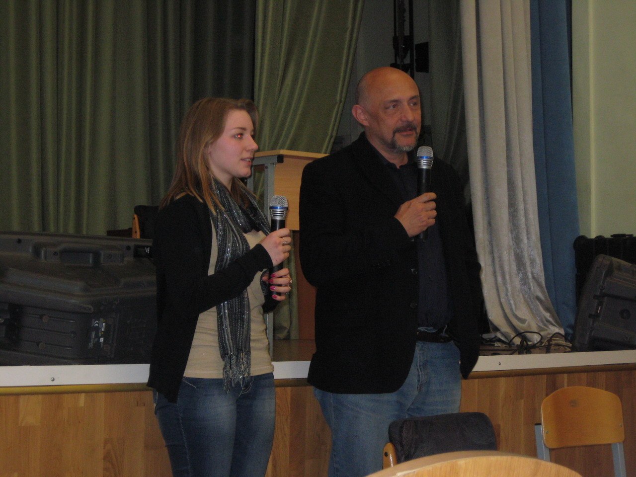 Речь на открытии: заморский гость итальянец Роберто Квалья, при помощи расторопной студентки