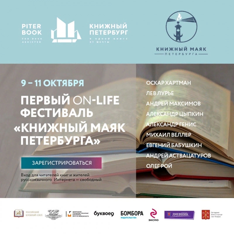 C 9 по 11 октября в Санкт-Петербурге пройдёт первый книжный фестиваль-праздник «Книжный маяк Петербурга». В его рамках будут встречи с авторами, мастер-классы специалистов и литературные дискуссии.