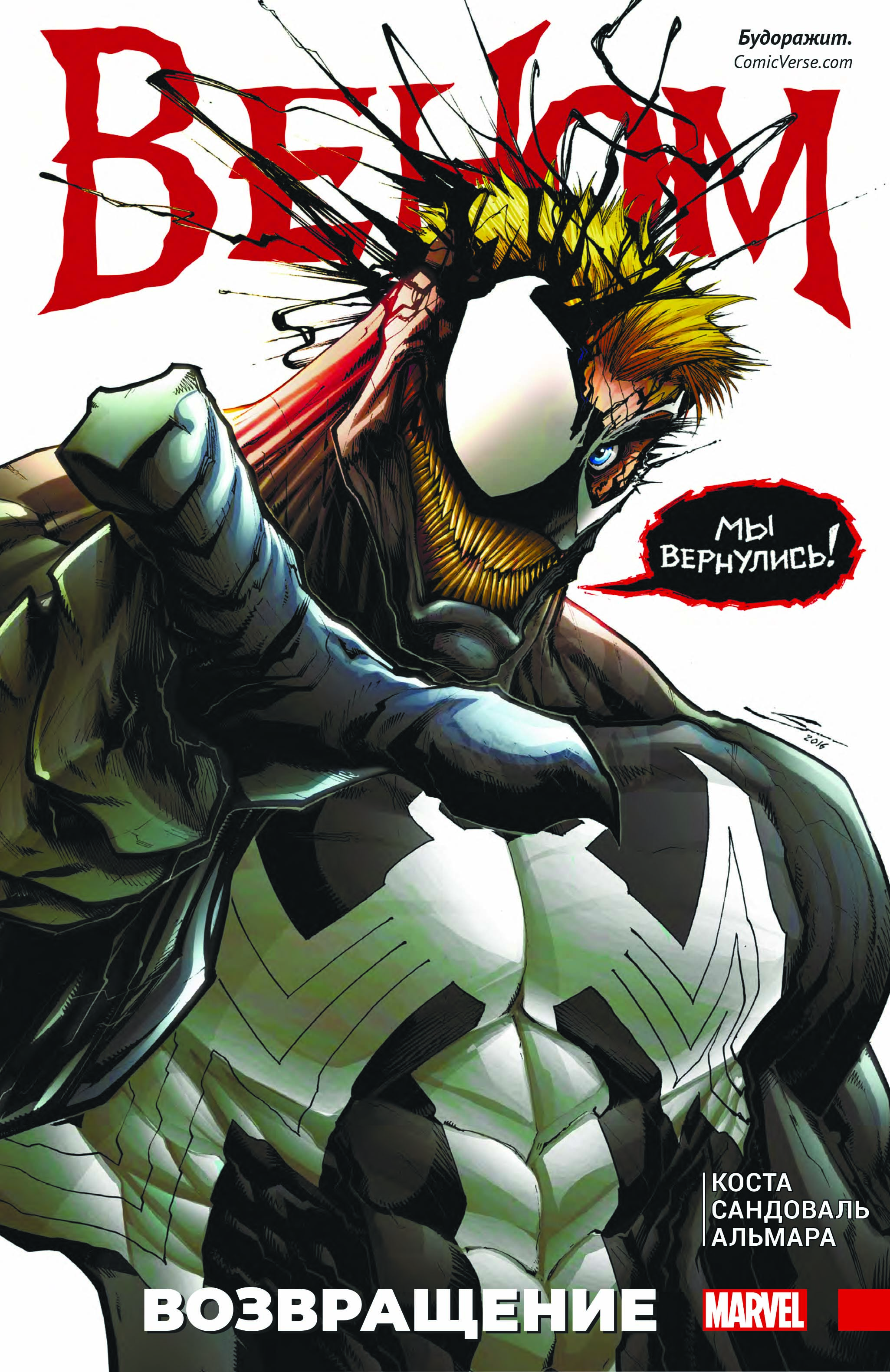 ВАШ ЛЮБИМЫЙ СИМБИОТ ВЕРНУЛСЯ В НЬЮ-ЙОРК. Никакого «Агента Космоса». Никакого «Смертоносного Защитника». Никакого «Космического Рыцаря». Настало время для нового Венома. Как здорово быть плохим! Но вот он опять на Земле, и кто же с ним соединился — и превратился в клыкастое склизкое чудище? Пока симбиот вспоминает старые фокусы, погрузитесь в самую убийственную из историй о Веноме! В ней участвуют его старые приятели вроде Мака Гаргана, Скорпиона! И один бывший носитель Венома, известный паутинник, стенолаз и остряк! О да, мы ещё не видели такой жаркой схватки между Веномом и Человеком-Пауком!