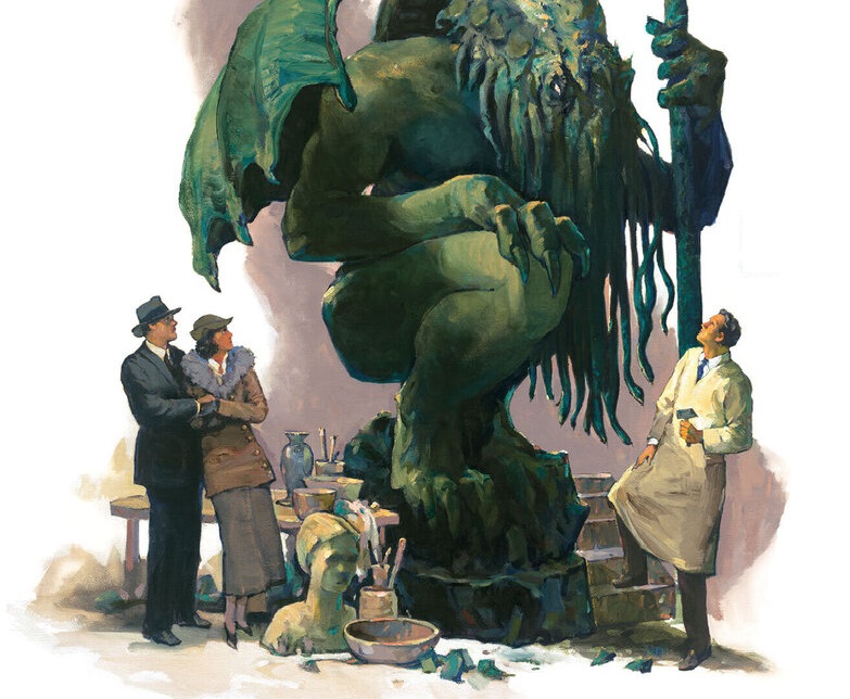 Ниже: карандашный рисунок художника-иллюстратора Гэри Джанни, к суперобложке американского издания рассказа "Зов Ктулху" (Flesk Publications, 2021).