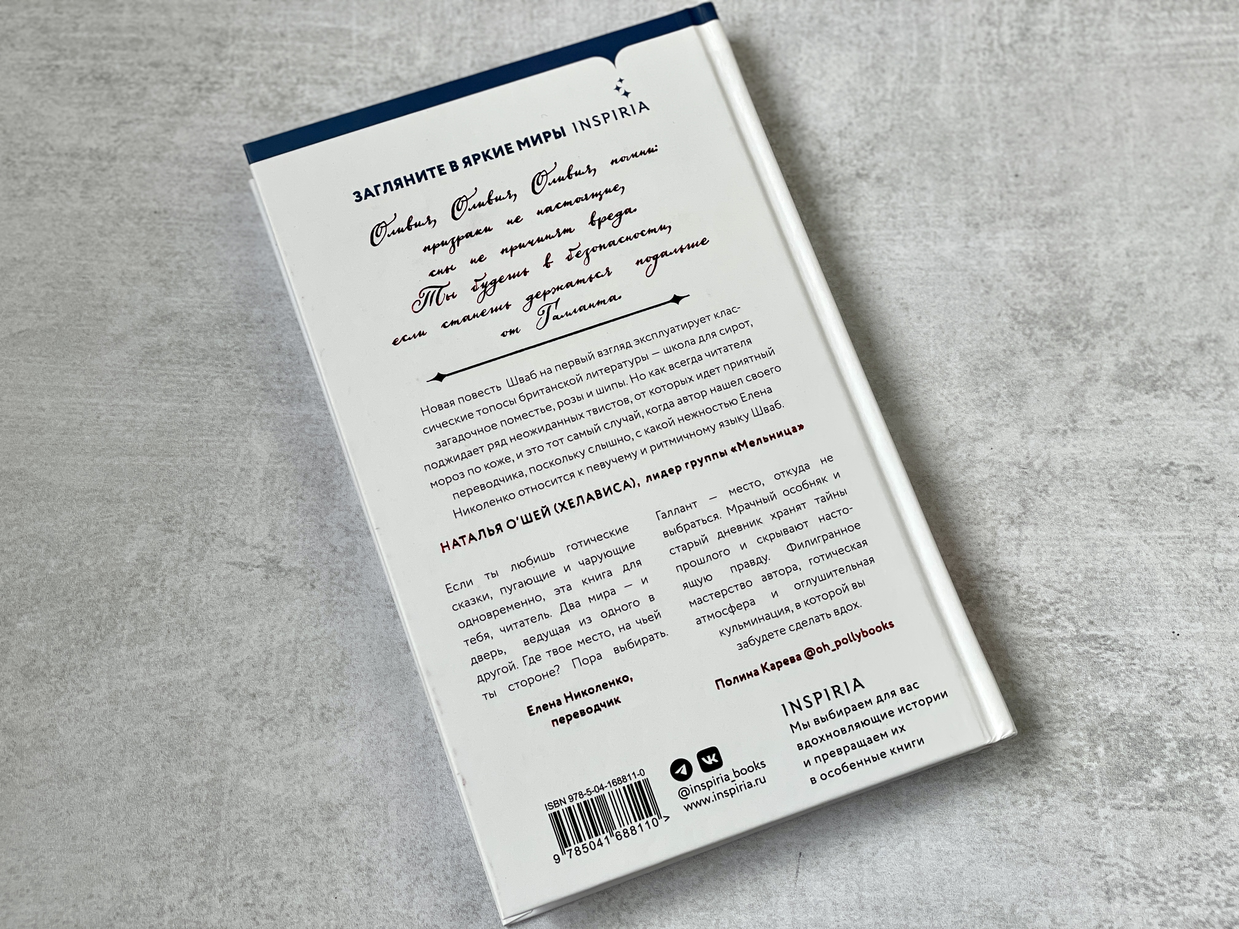 В сентябре под брендом Inspiria выйдет самый свежий на сегодняшний день роман Виктории Шваб, "Галлант". Западные критики сравнивают его с произведениями Нила Геймана и фильмами Гильермо дель Торо.