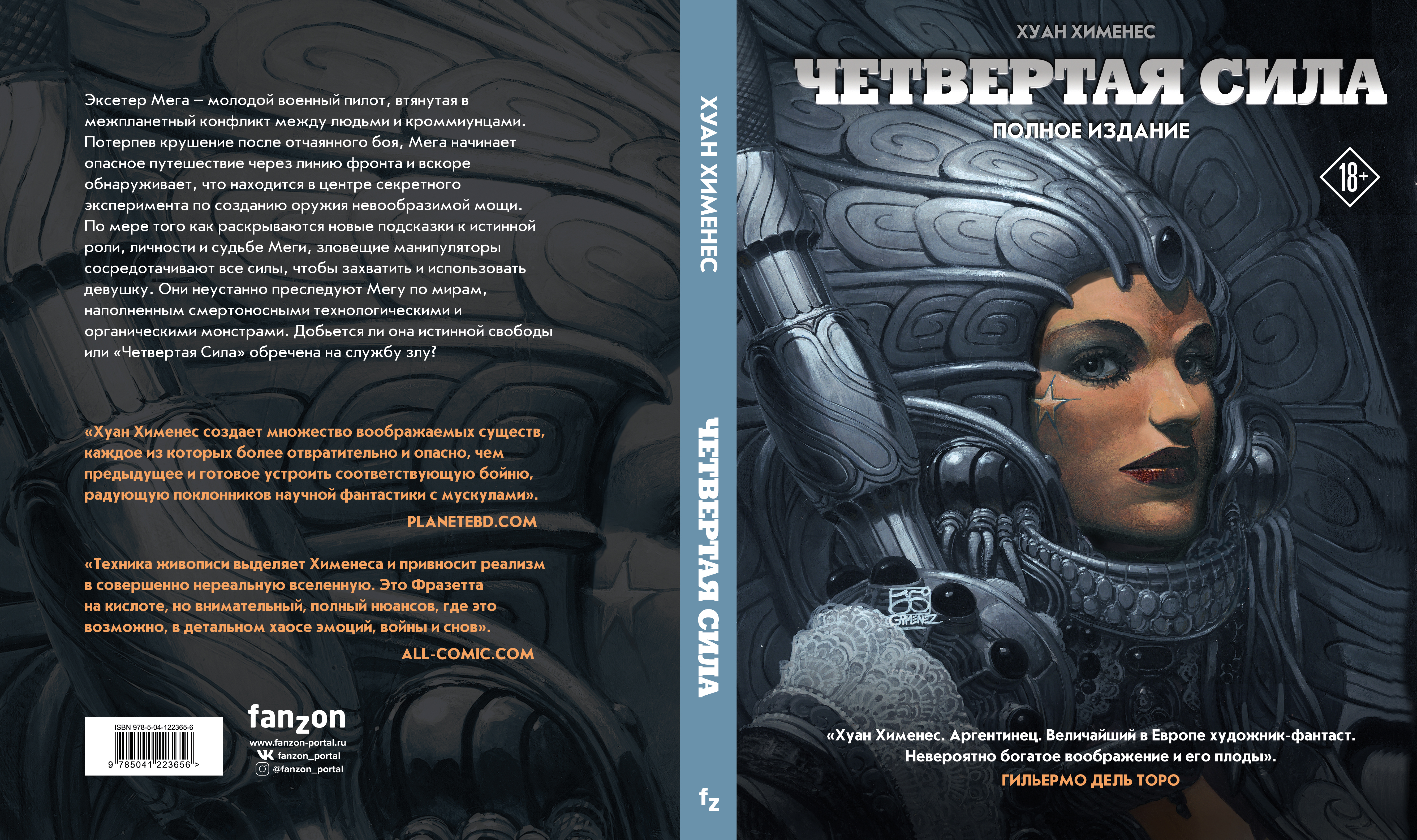 В сентябре мы выпустим на русском научно-фантастический комикс "Четвертая сила" от художника Хуана Хименеса, известного, в частности, по работе над "Метабаронами". Вся серия выйдет в одном томе, его объем — 256 страниц.