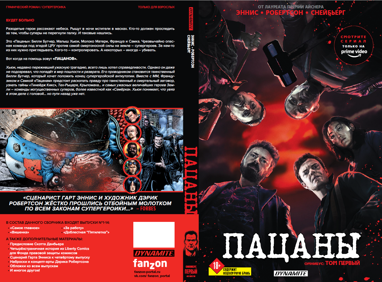 В июле увидит свет первый омнибус сатирической супергероики "Пацаны". Издание в твердом переплете, 376 страниц. В него войдут первые 14 выпусков серии — все они прошли дополнительную редактуру.