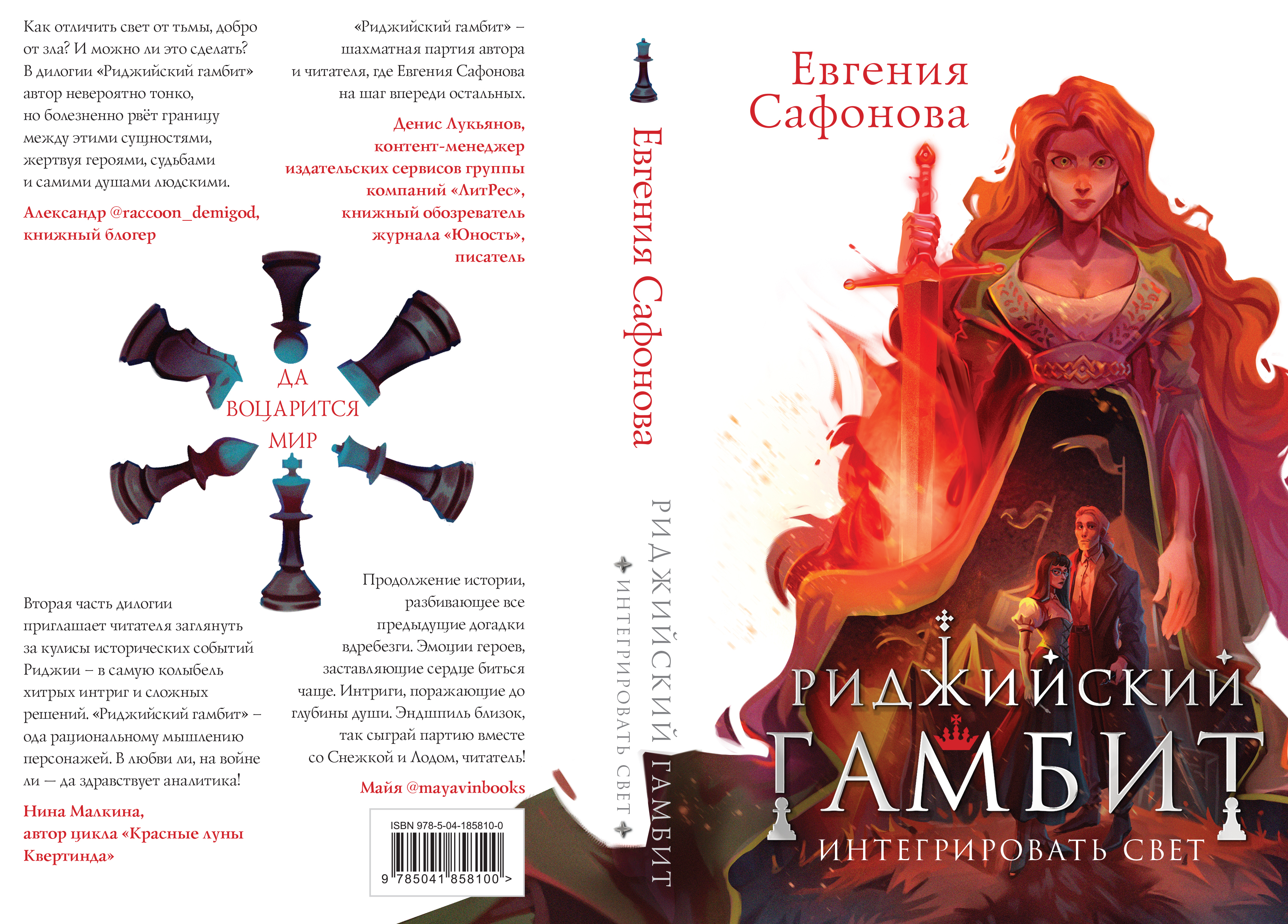 В августе увидит свет переиздание второй части фэнтезийной дилогии Евгений Сафонова "Риджийский гамбит". Как и первый том, "Интегрировать свет" оформлен Полиной Граф.