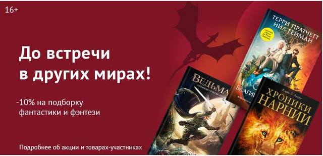 До встречи в других мирах! В фантастических мирах действуют свои законы и правила, с которыми читатель знакомится во время книжного путешествия. На каждом шагу встречается что-то новое и необычное – мистические культы, кибернетика будущего, драконы и прекрасные эльфийские города. Мы решили порадовать вас и сделали скидку на фантастику и фэнтези. Портал открывается, спешите навстречу приключениям!