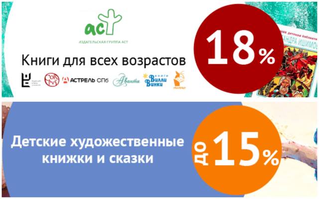 Издательства подготовили для вас приятный сюрприз: с 10 марта (17:00) до 30 апреля 2020 г. скидка 30% на самые разные книги. Много детских сказок и комиксов, проверенной временем фантастики, детективов и триллеров. Участвуют книги издательств: «Питер», «Стрекоза» и «Эксмо». Следите за каталогом, его состав может меняться. Скидка на книги из каталога суммируется с накопительной. Подробнее...