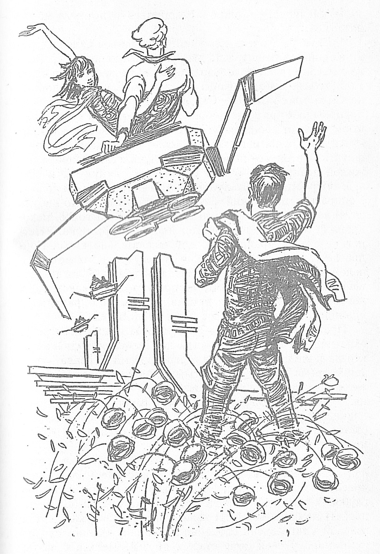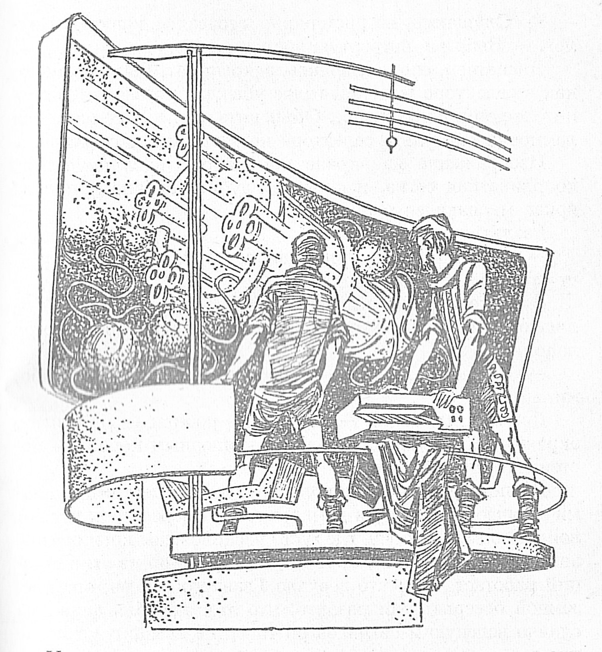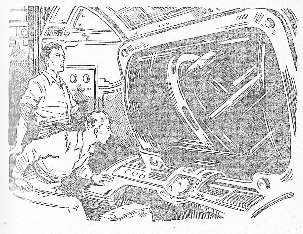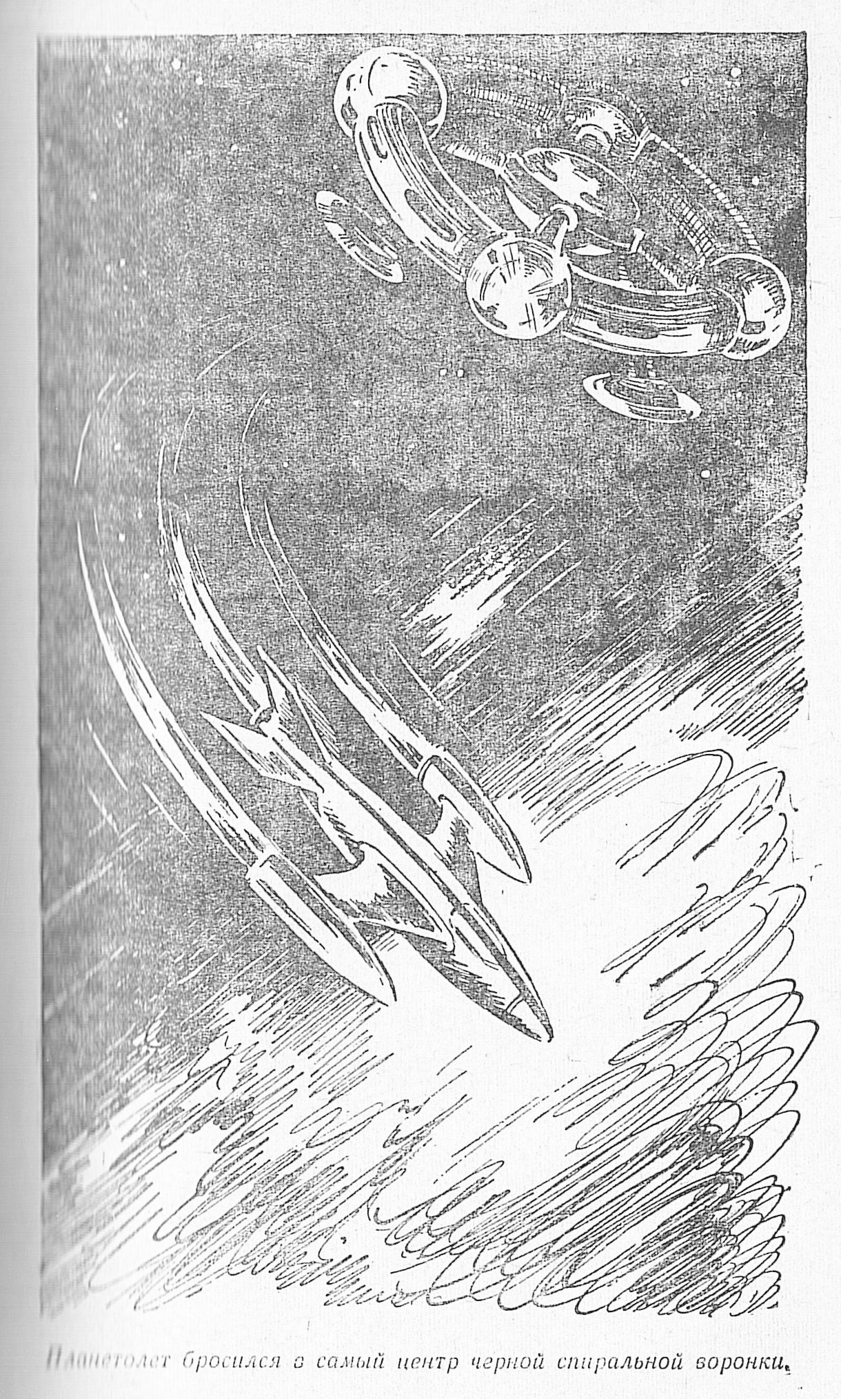 Ключевой для всей повести момент — появление в околоземном пространстве корабля "Таймыр", артефакта из прошлого. Диспетчеры из рассказа "Перестарок" в изумлении разглядывают допотопную ядерную ракету: откуда она взялась? На двух последних иллюстрациях хорошо видны аварийные роботы, вцепившиеся в громадину.