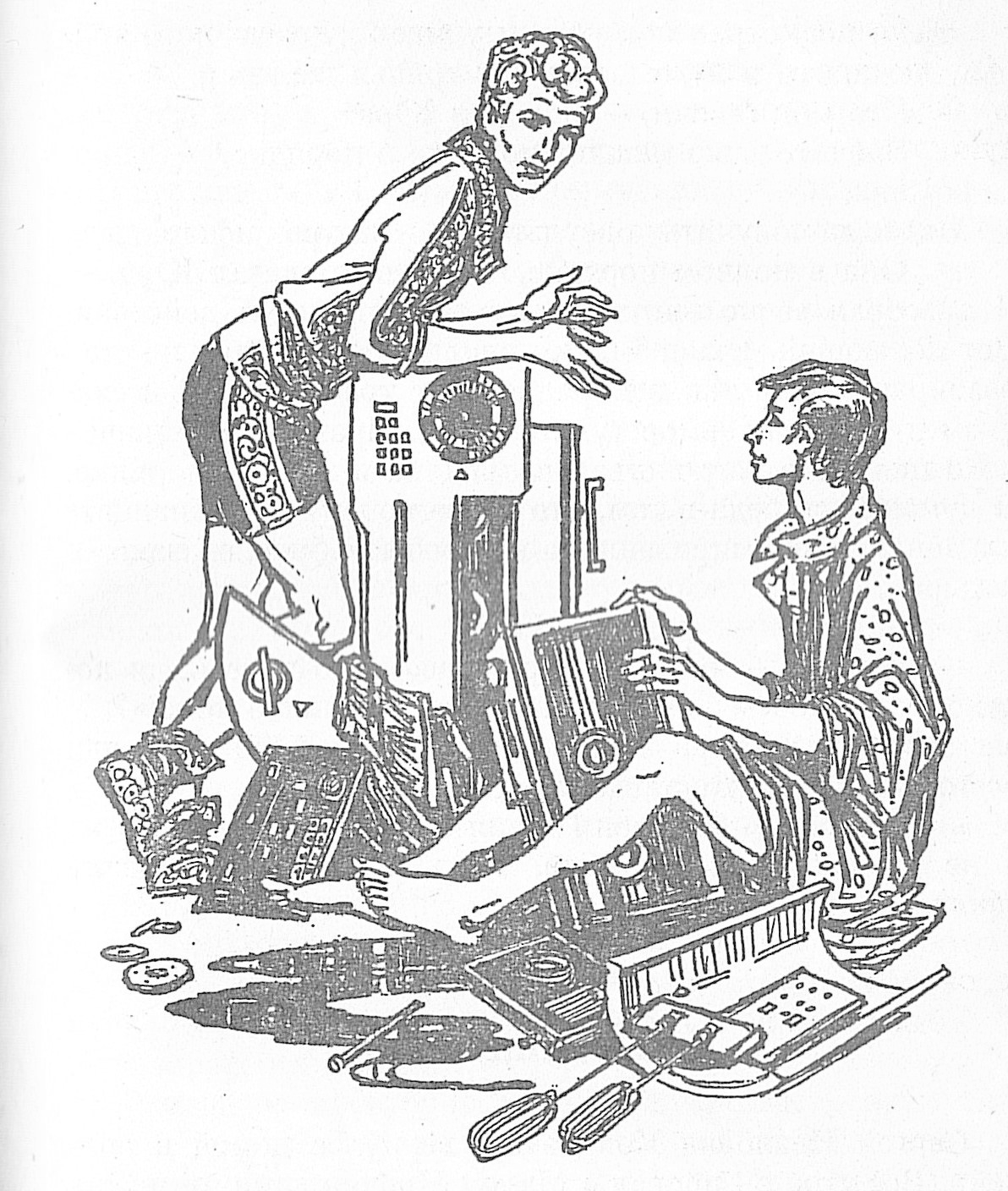 Отсутствие технологий ставит всех нас на один уровень. Вот и иллюстрации к рассказу "Свечи перед пультом" сложно идентифицировать, если не брать во внимание стиль авторов. Сотрудники Института биологического кодирования пытаются скопировать мозг великого учёного.