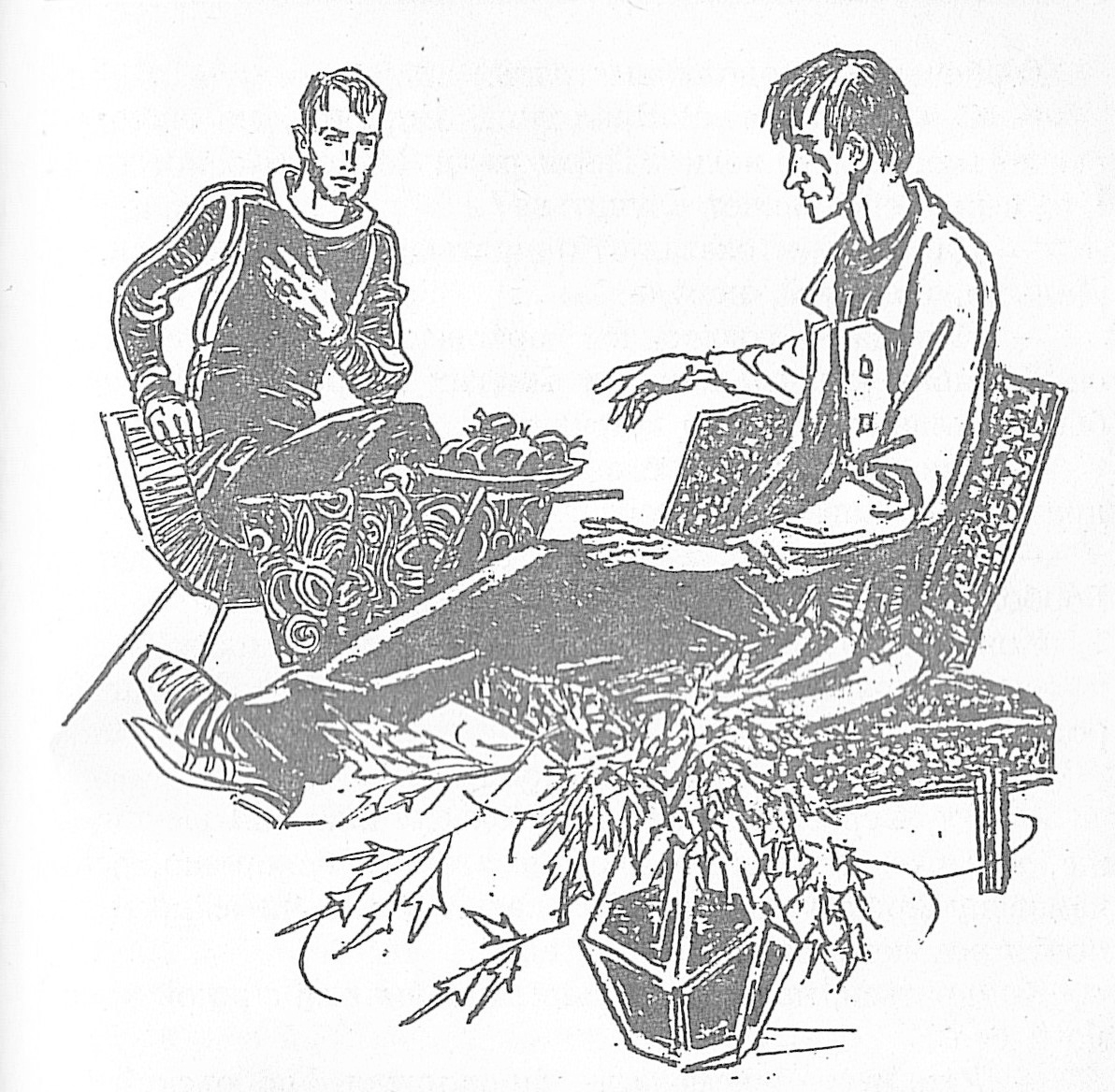 Всё же, Горбовский в исполнении Рубинштейна мне более симпатичен. У Макарова легендарный звездолётчик излишне серьёзен и, может быть, даже хрестоматиен. В тексте сцена знакомства приправлена лёгкой иронией, поначалу Горбовский кажется персонажем комическим. Поэтому иллюстрации из 60-х вызывают некоторый диссонанс. Горбовский на рисунке 97-го года выглядит расслабленным, раскрепощённым, что делает образ гармоничным.