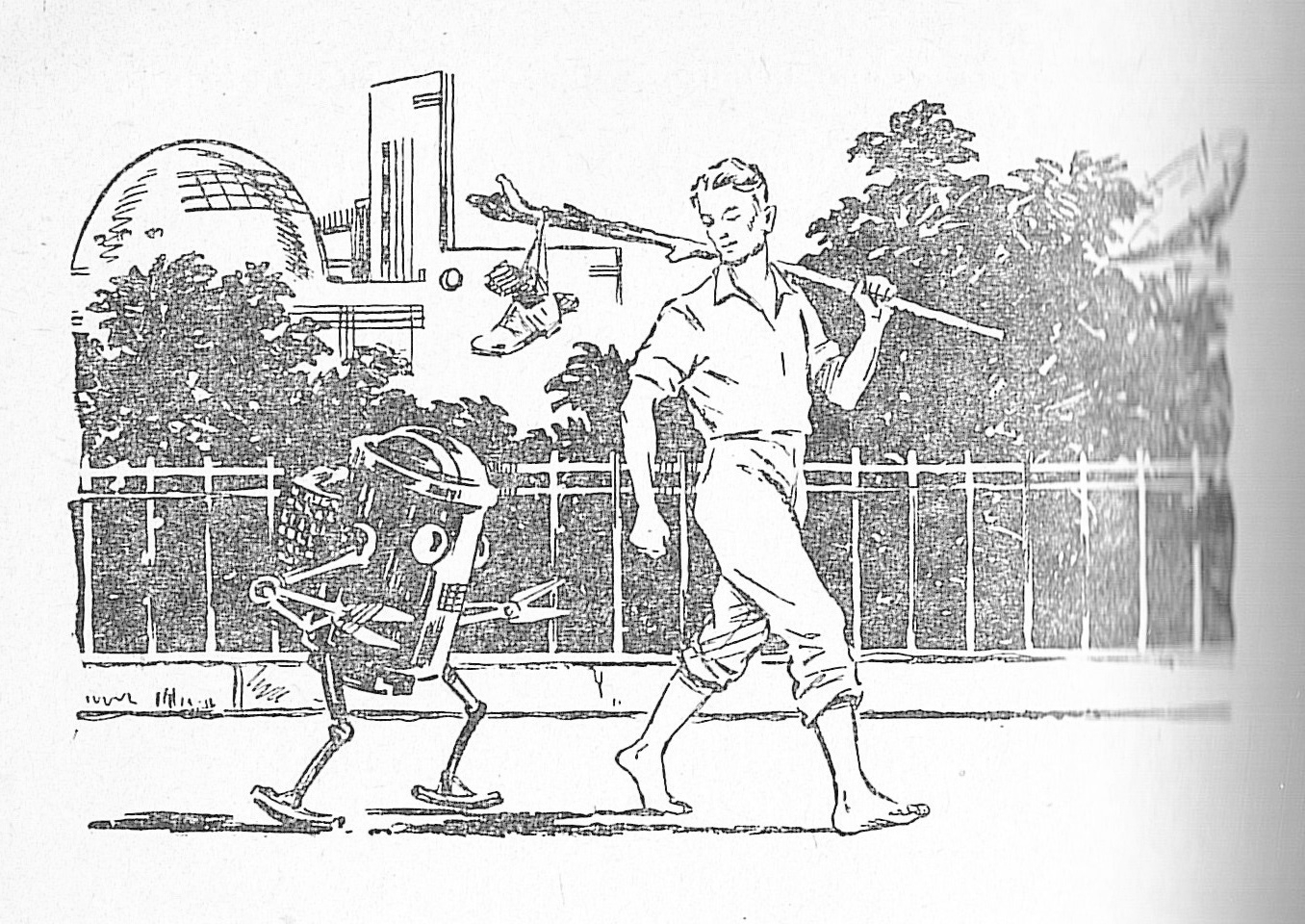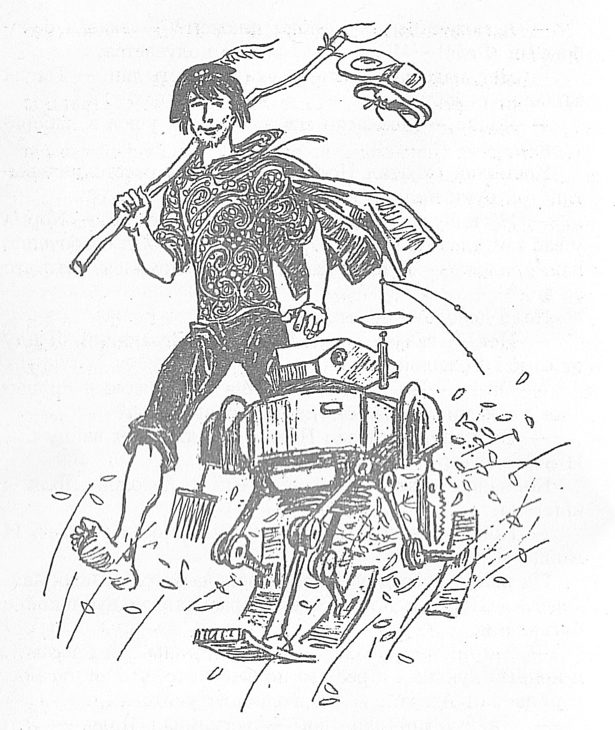 Динамичная сцена поимки робота из рассказа "Загадка задней ноги". Вызывает интерес выражение лиц участников событий: у Юрия Георгиевича Макарова исследователи сосредоточены на решении возникшей проблемы, скручивают бедного робота с каким-то даже ожесточением. На иллюстрации Льва Яковлевича Рубинштейна ребята смеются, кричат друг другу, создаётся впечатление, что один из них даже произносит вдохновлённую речь.