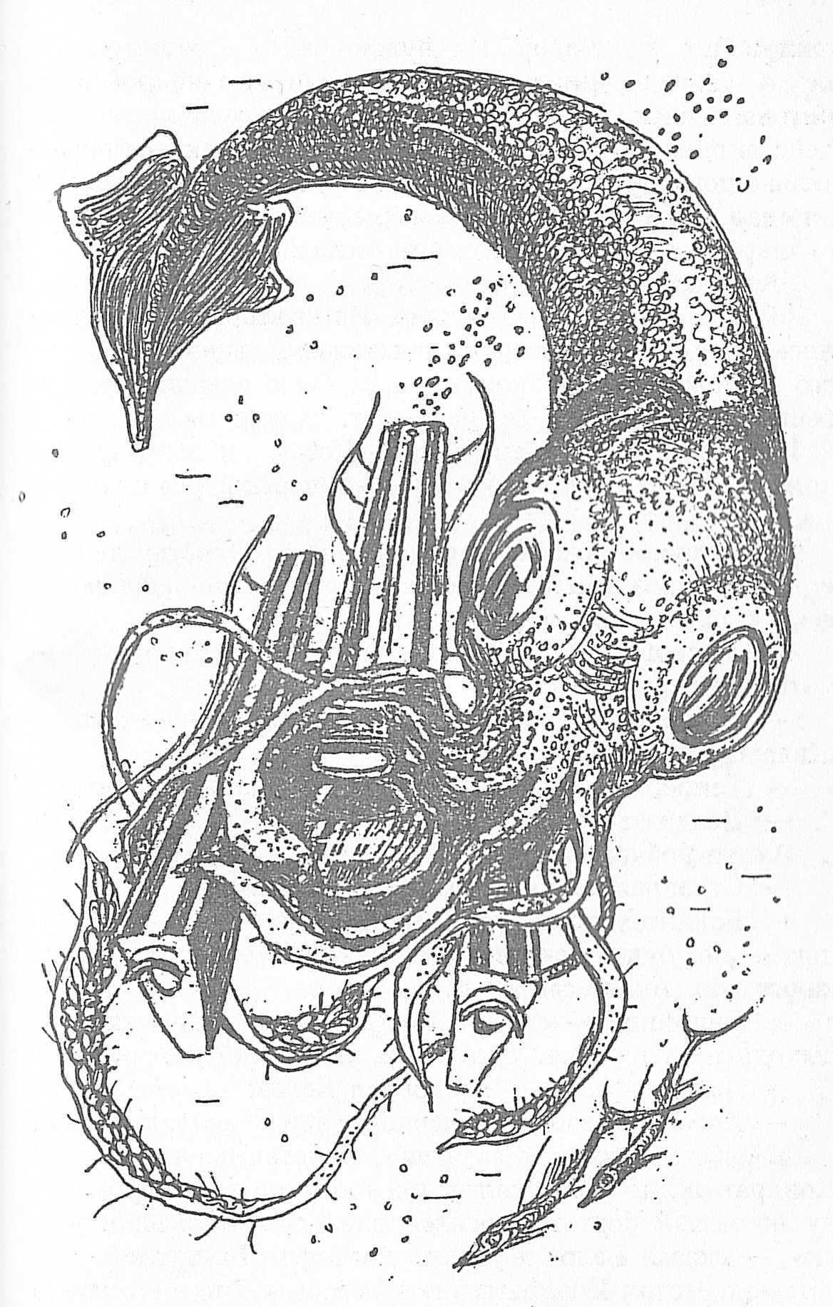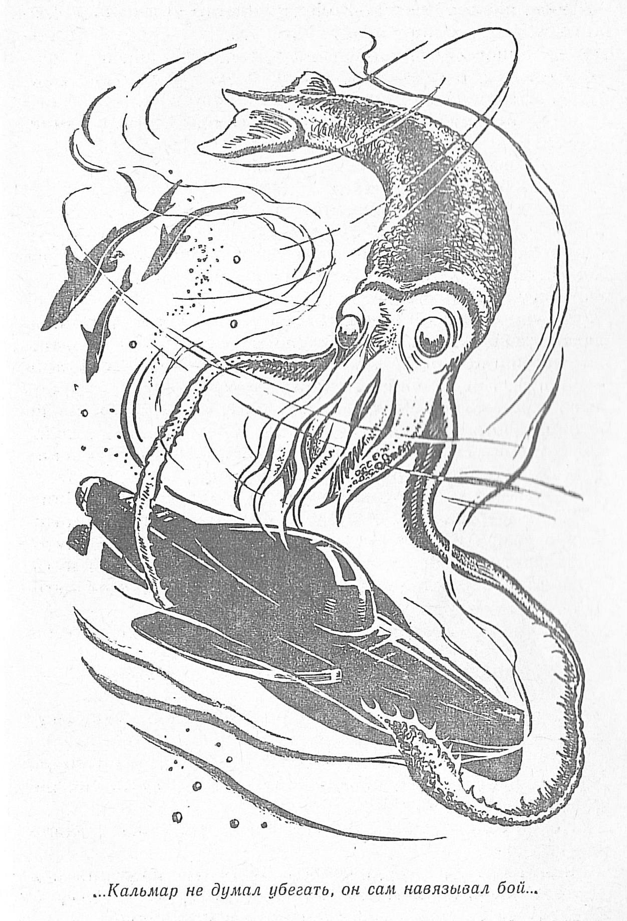 В рассказе "Глубокий поиск" на субмарину Океанской охраны нападает гигантский глубоководный кальмар. Чудовище на иллюстрациях получилось уж очень глазастое. По тексту, глаза у кальмара хоть и "громадные", но всё же "величиной с футбольный мяч". У образца 97-го года они несколько больше.