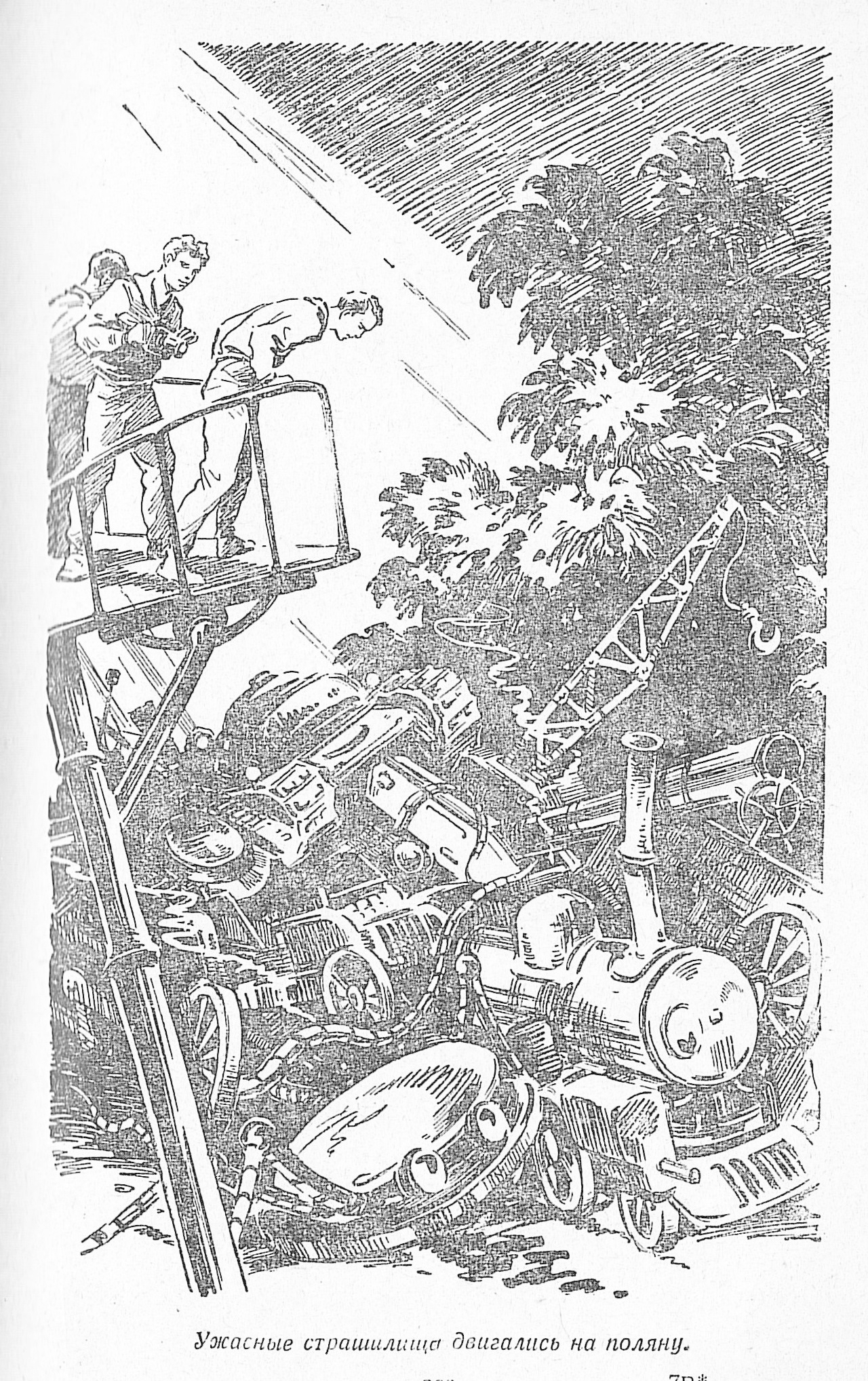 Сцены с механическими чудовищами-уродцами на следующих рисунках выполнены в едином духе: свалка и неразбериха. Разве что, можно отметить: машины у Макарова явно забавные, этакие "мультяшки".
