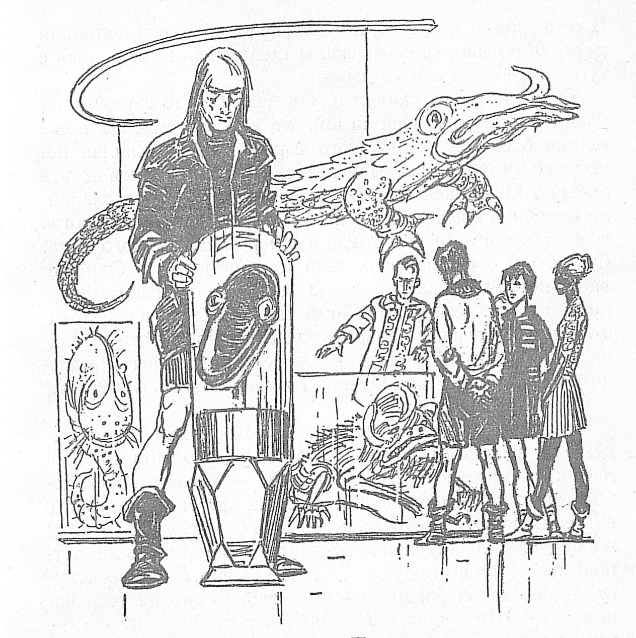 Иллюстрации Юрия Георгиевича Макарова — вновь будто бы одна и та же сцена, но с разных ракурсов. Разве что, шлем у Поля несколько видоизменился. А вот внешность пришельца на рисунке Льва Яковлевича Рубинштейна существенно отличается. Момент посещения музея во внутренних рисунках книг 63-го и 67-го годов не представлен. Зато соответствующая иллюстрация вынесена на обложку издания 1963-го года.