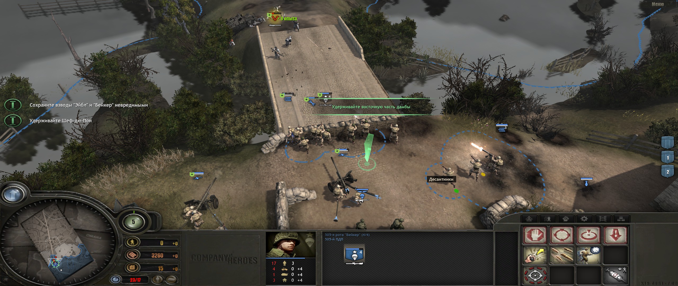 Во второй кампании под названием Дамба под наше управление поступают два взвода десантников и ведут они себя хлеще Рэмбо и Терминатора вместе взятых. Куча спецспособностей — различные гранаты и взрывчатка, воодушевление, подавляющий огонь. Вражеских солдат они выкашивают просто толпами, да и перед тяжелой техникой не пасуют. Вот здесь сюжетка показалась мне немного пафосной, в духе классического фильма про войну, типа Спасения рядового Райана, но играется всё это очень бодро и динамично.