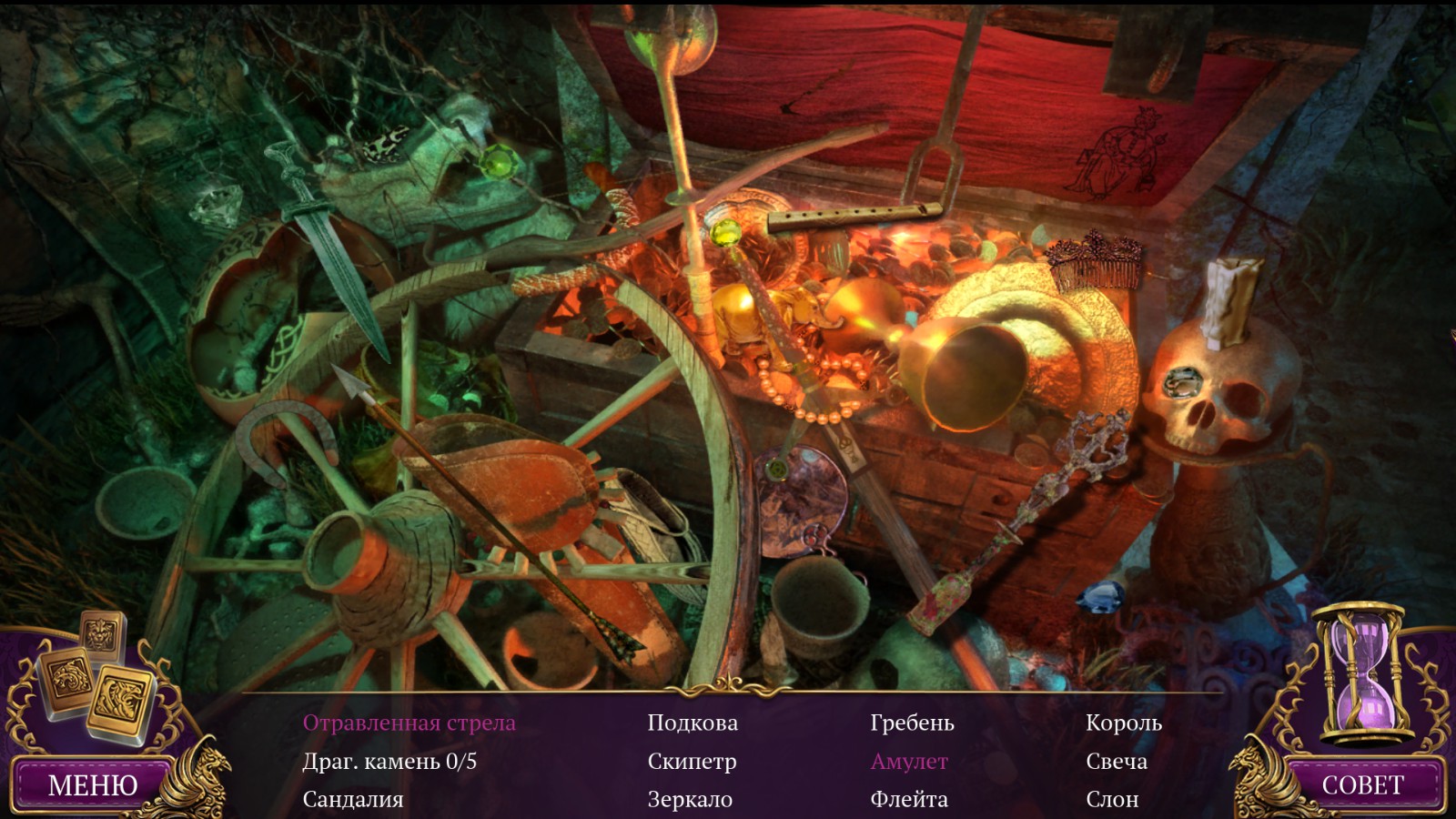 На экране поиска предметов так же как в «Кошмарах из глубин» есть альтернатива — переключиться в режим маджонга. Иногда реально помогает, т.к. текстовые описания предметов, которые требуют найти, иногда ставят в тупик, а возможности посмотреть силуэт искомой вещи нет, так что приходится либо прокликивать каждый квадратный миллиметр экрана, либо — маджонг, здесь он немного сложнее играется, на мой взгляд, без перемешивания мне по крайней мере завершить расклад не удавалось. После прохождения полез по привычке в раздел бонусного контента, но ставшей уже привычной дополнительной главы не обнаружил. По длительности эта игрушка проходится немного дольше аналогов, так что судя по всему создатели посчитали, что и так всё норм, а с бонусами уже жирно будет, ну ок…