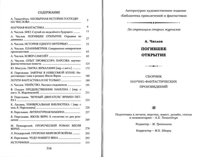 А. Числов – таинственный персонаж отечественной журнальной действительности 1910-х гг. Литературная жизнь загадочного писателя длилась недолго – с 1913 по 1917 г. Истории публиковались в журналах «Мир приключений», «Природа и люди», «На суше и на море» и в «Журнале приключений». Их было немного, но они становились событием – автор выделялся умением выстроить коллизию, незаурядным юмором и научной проработкой фантастических сюжетов. Кто скрывался за этим псевдонимом? Можно строить предположения, но наиболее вероятное: «А. Числов» – одна из многочисленных «масок» Я.И. Перельмана – «доктора занимательных наук», неутомимого популяризатора научных знаний и… сотрудника большинства изданий, в которых печатался «А. Числов».