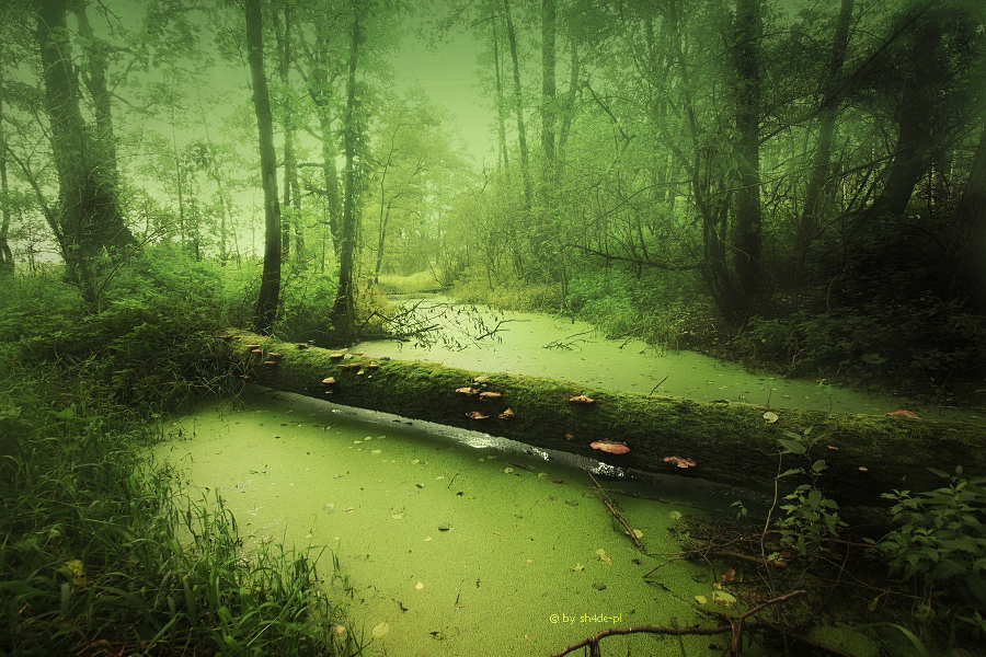 Стоял тёплый октябрьский денёк; и безмятежное уединение леса, осенняя мягкость света и воздуха делали саму идею некоего зла или пагубности невозможной. Когда я подошёл к окраине луга, то был уже готов высмеять нелепые представления Эмбервиля; и даже само это место, на первый взгляд, произвело на меня скорее унылое и невыразительное впечатление. Черты пейзажа были те же, что были так ярко описаны художником, но я не мог обнаружить открытого зла, которое косилось из воды, из ивы, из ольхи и из камышей на его рисунках.