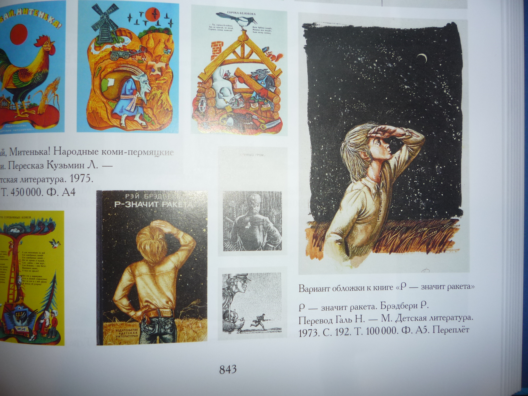 Из любопытных открытий и находок: представлен альтернативный вариант обложки художника Михаила Ромадина к детлитовскому сборнику Рэя Брэдбери "Р — значит ракета". В 1973 году она вышла с рисунком "со спины", а был вариант и "в профиль":