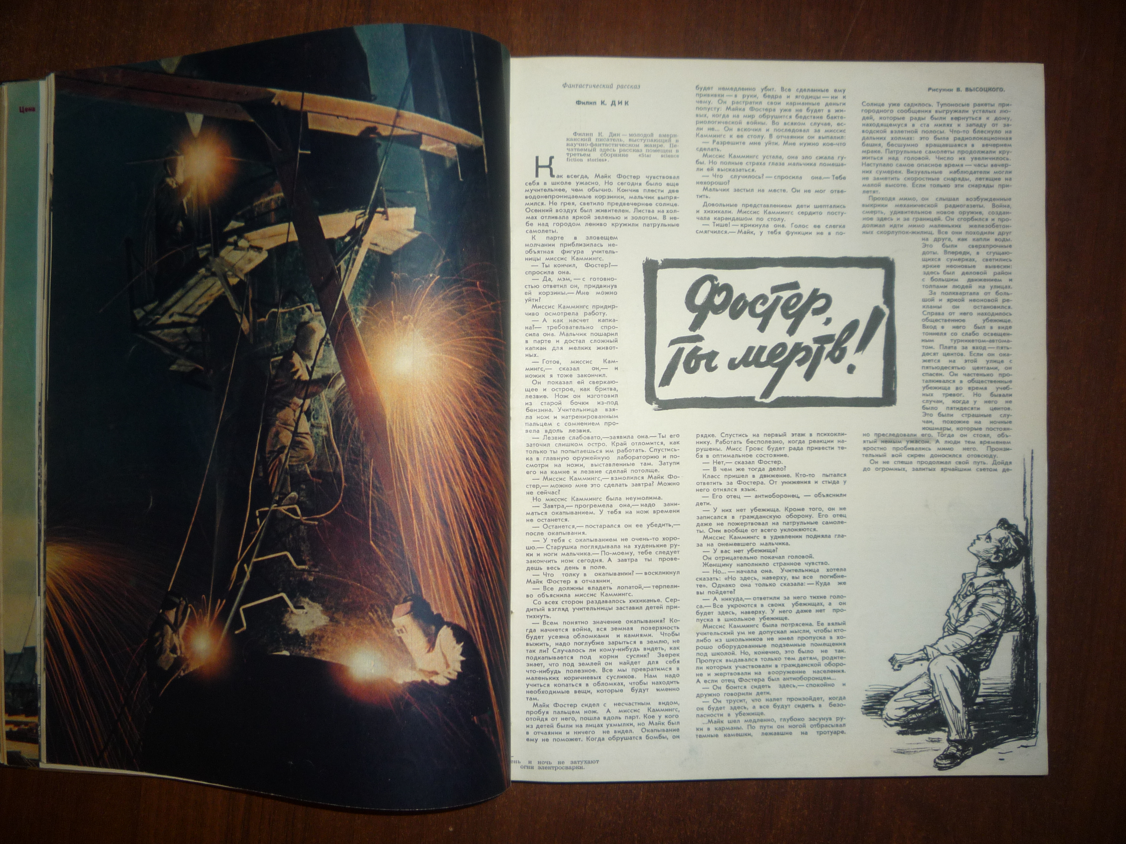 Для меня было удивительным открытием сведения о том что первая публикация Филипа Дика в СССР имела тираж 1 миллион 400 тысяч экземпляров. Дебют состоялся в журнале "Огонёк" 13 апреля 1958 года — с рассказом "Фостер, ты мёртв!".