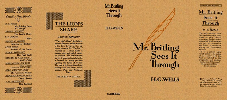 В романе «Мистер Бритлинг пьет чашу до дна» возмущение Уэллса войной пересилило все те «далеко идущие планы», которыми он руководствовался в своей поддержке войны. В эти годы против войны открыто выступили А. Барбюс, Г. Манн, Б. Шоу, Л. Франк, и Уэллс оказался в этом замечательном ряду. «Мистер Бритлинг — это я сам , — говорил Уэллс . — Это история моего сознания во время войны». Сказано это не очень точно. Сознание Уэллса, достаточно сложно развивавшееся до «Мистера Бритлинга» и в момент его написания, и дальше заставляло его совершать неблагородные поступки.