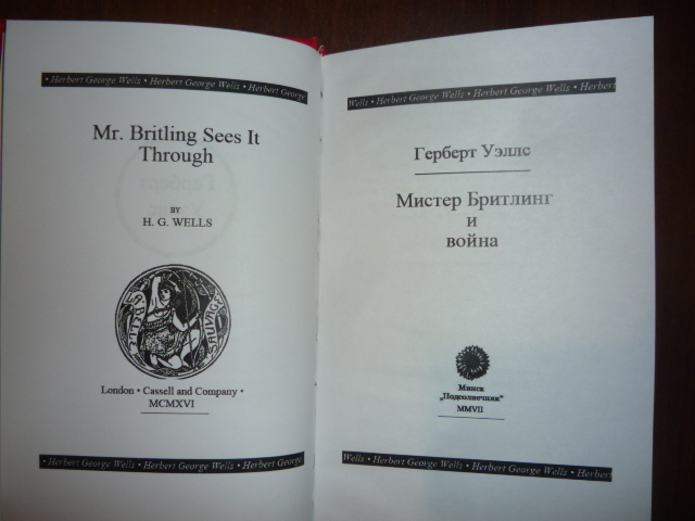 Роман 1916 года "Mr Britling Sees It Through", в тот же год был переведен театралом и символистом Михаилом Ликиардопуло (1883-1925) на русский язык, и печатался из номера в номер в течении полугода в петроградском журнале "Летопись", под названием "Мистер Бритлинг пьёт чашу до дна". Книжным изданием перевод вышел в 1918 и больше никогда не переиздавался на русском языке. https://fantlab.ru/work9477