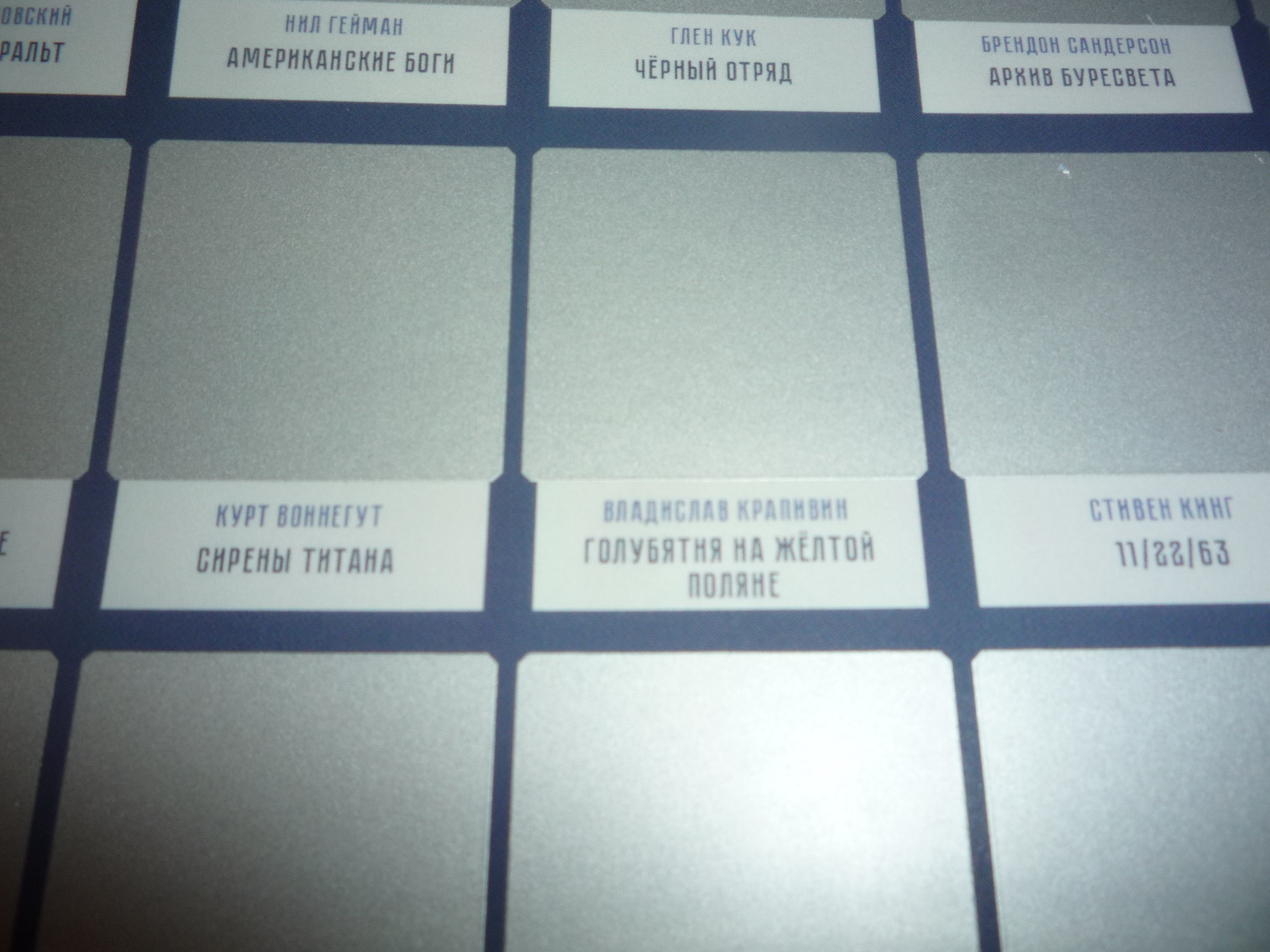 Забавная игрушка для любителей фантастики — надо прикрепить плакат на стену, и стирать монеткой, ключом или ногтём только те клеточки, под которыми имеются названия прочитанных произведений. Вариант игры: два игрока, или более, со своими постерами, очищают клеточки тех книг которые читали. Потом сверяют, кто больше раскрыл пиктограмм. Можно наверное и дистанционно поиграть в эту раскрывайку. В этом прочерчивании, корябании постера нахожу отсылку к гештальт-психологии, которая учит, что личность человека определяют шрамы от ужаса и страха, полученные им в детстве. Эрик Берн вывел из афоризма Шекспира "Весь мир — театр, а люди в нем актеры" (1599) цельное учение о трансакционном анализе, написав популярную книжку "Игры, в которые играют люди" (1964). Так вот личность любителя фантастики определяет полнота плаката с раскрытыми настежь клеточками этого постера.