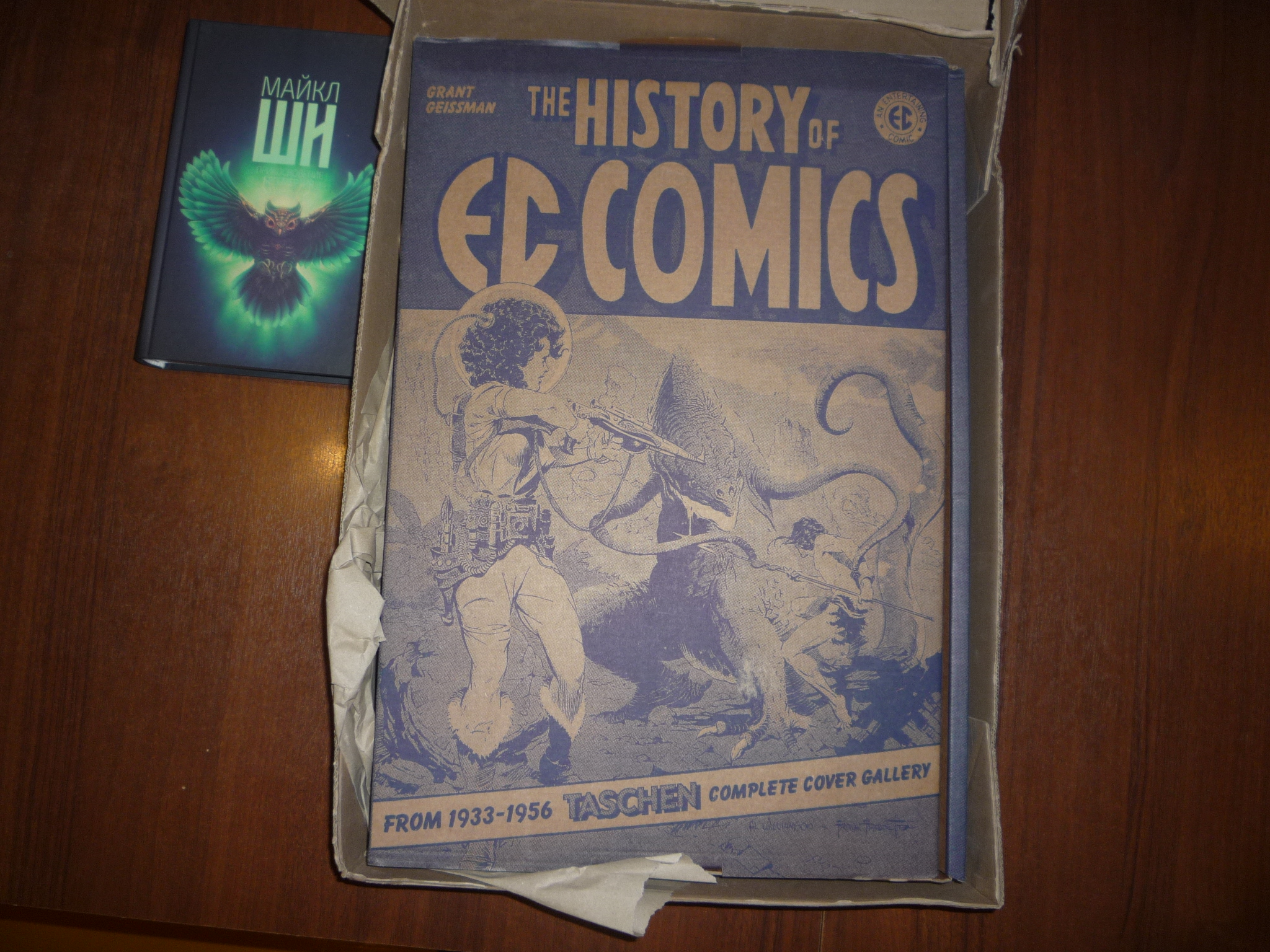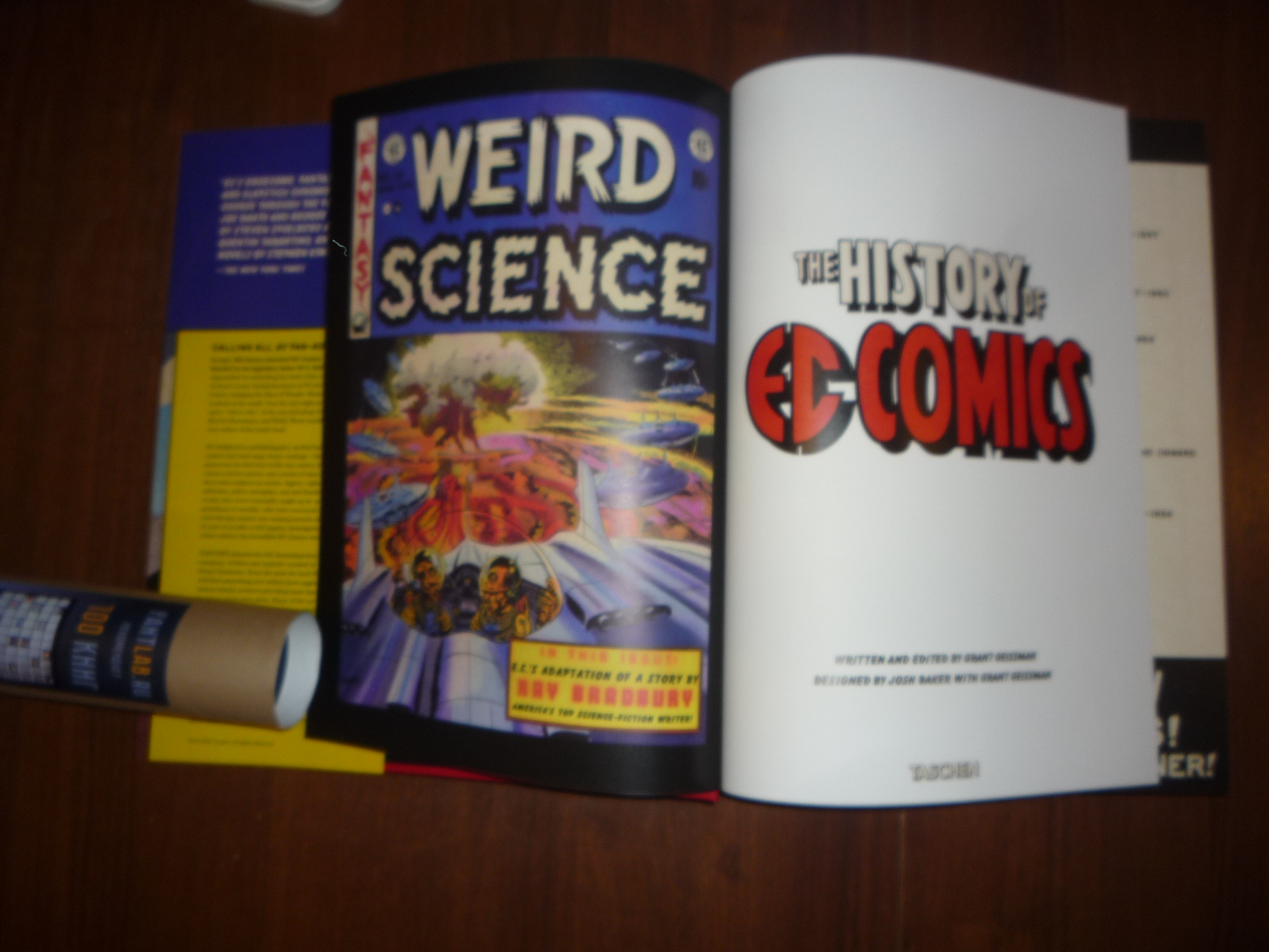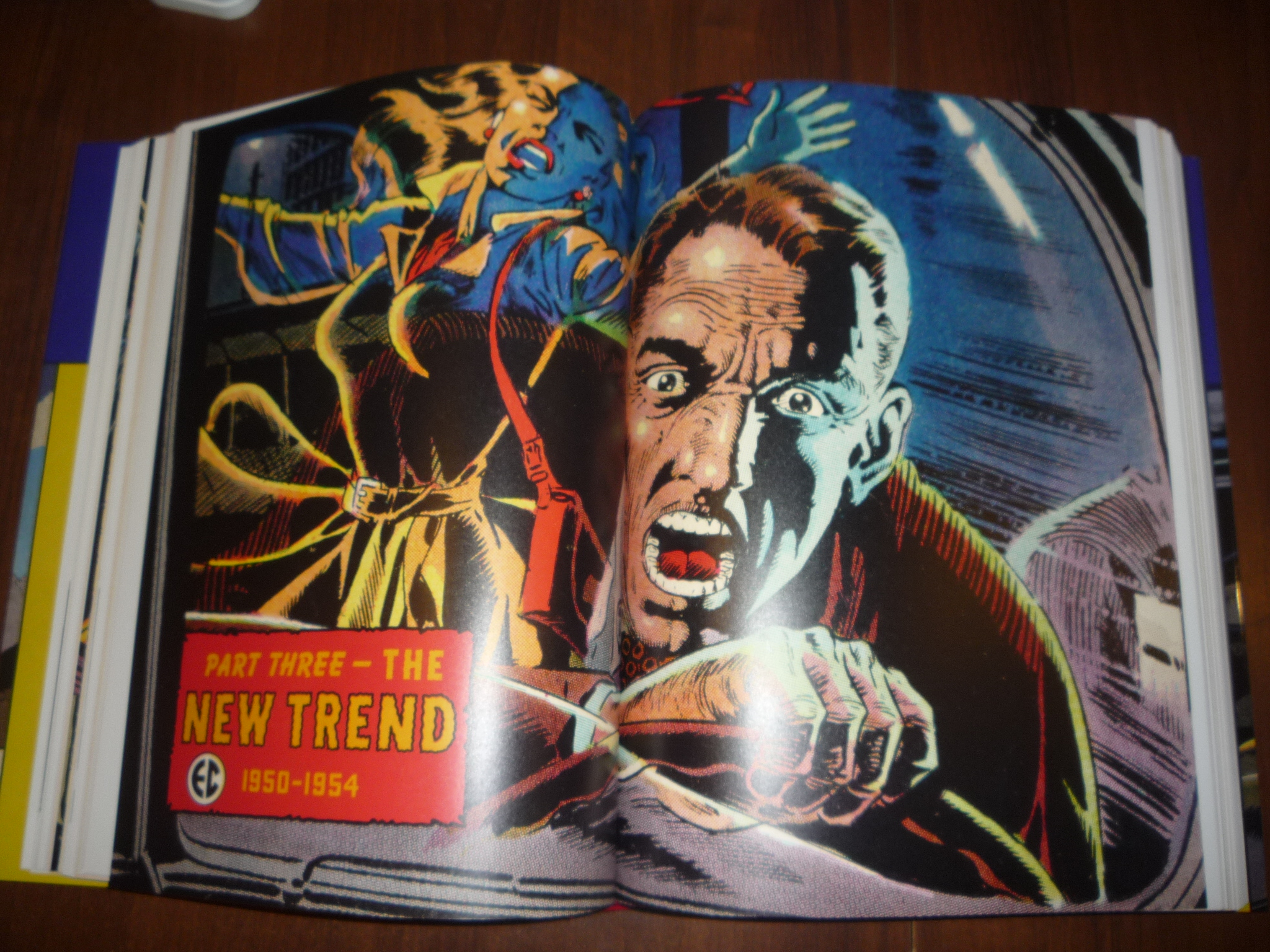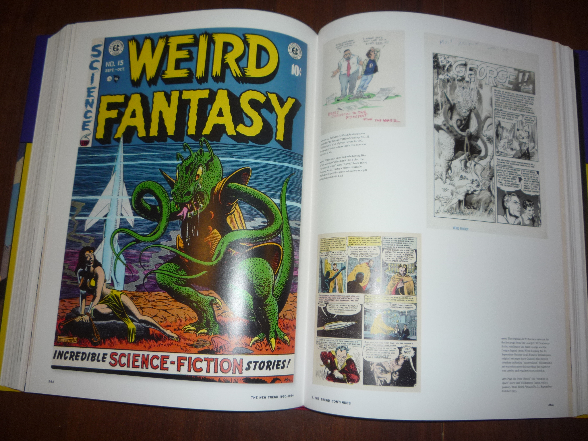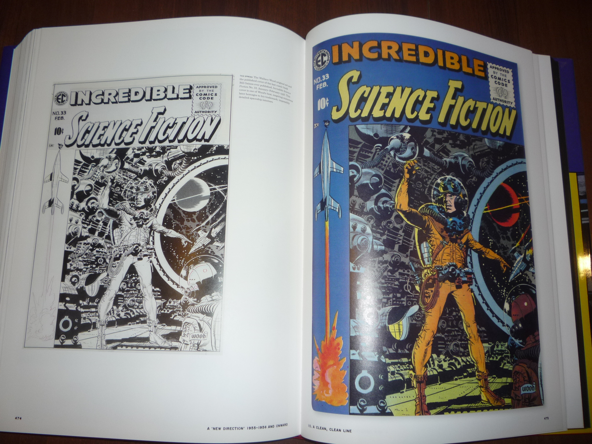 Перед нами одна из его свежих работ: "История комиксов фирмы ЕС", выпущенная издательством Ташен в сентябре 2020 года. 592 страницы, размеры книги впечатляют: 30 на 40 см, вес 6 килограмм без нескольких граммов. Более тысячи иллюстраций, около ста редких изображений выуженных автором из архива семьи издателей фирмы "Образовательные комиксы" (ЕС — это Educational Comics). Книга охватывает период с 1933 по 1956 год, описывает оба периода в жизни фирмы — 1933-1947, когда М.С.Гейнс печатал обучающие истории и адаптации классики, и период 1947-56, когда руководить издательством стал сын, Уильям Гейнс. Вот тут-то и понеслось: Гейнс-младший разрешил художникам подписывать свои работы чтобы читатели различали авторов и голосовали за лучших иллюстраторов, Гейнс-младший открыл двери для лютых форматов — для ужастиков, мистики, научной фантастики. Вопросов гонораров я не изучил, но в ЕС пришли молодые таланты: Франк Фразетта, Валли Вуд, Эл Фельдштейн, Харви Курцман, Рид Крэндалл. Каждый из этих художников породил целые полчища поклонников, эпигонов, продолжателей и внёс своё вклад в визуализацию фантастики как жанра. Поразительно, все они небольшое время, буквально несколько лет, работали в одном издательстве. Закат фирмы связывают с оголтелостью Маккартизма-антикоммунизма и воцарившейся после этого пуританской моралью. "Пуритане это люди, которым плохо, когда другим хорошо".