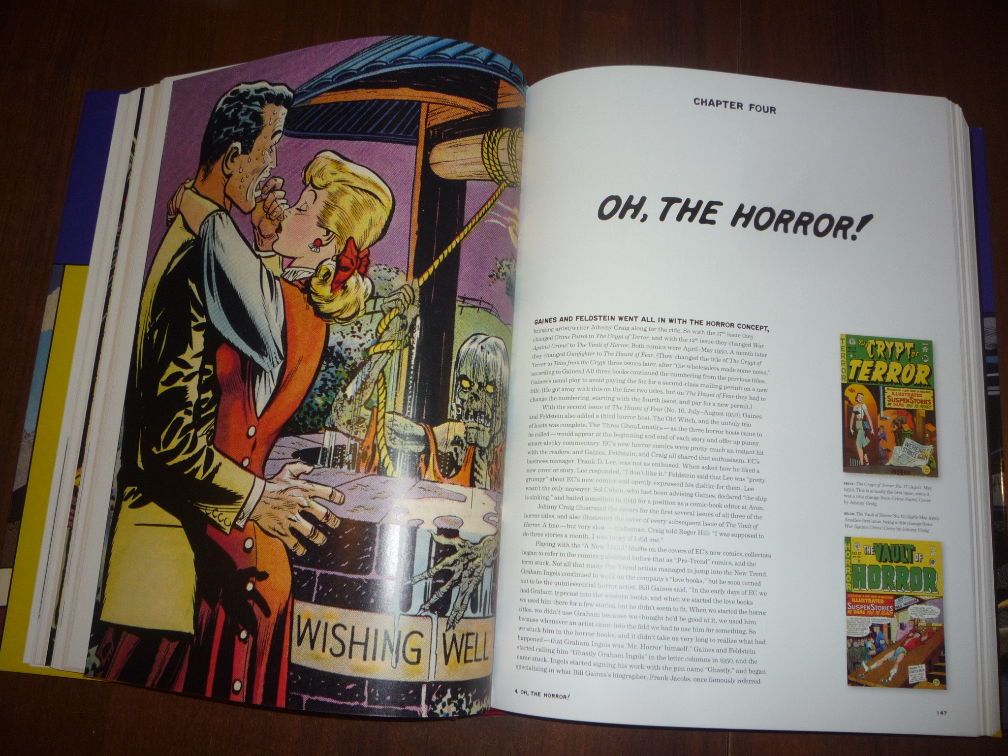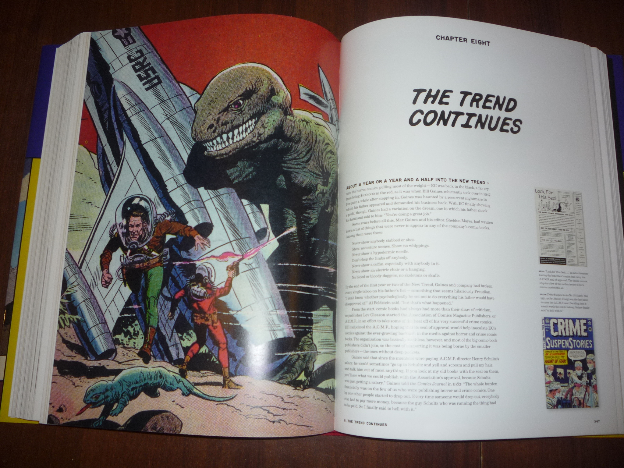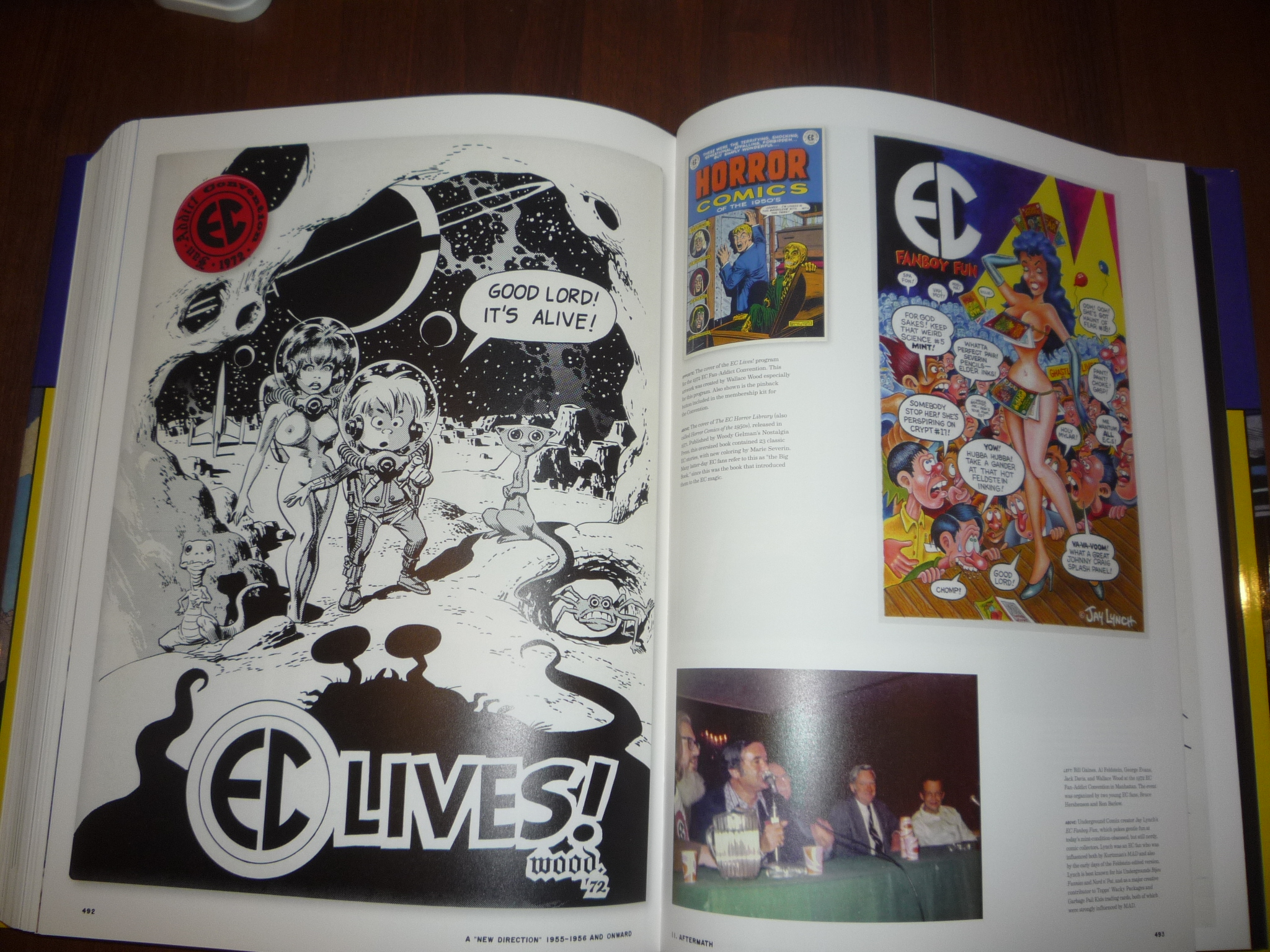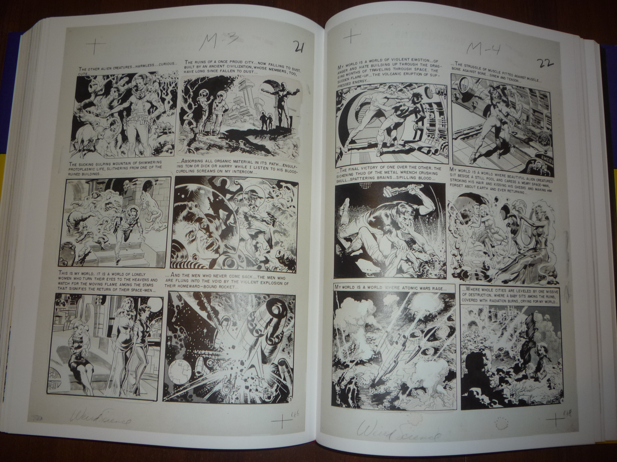 Перед нами одна из его свежих работ: "История комиксов фирмы ЕС", выпущенная издательством Ташен в сентябре 2020 года. 592 страницы, размеры книги впечатляют: 30 на 40 см, вес 6 килограмм без нескольких граммов. Более тысячи иллюстраций, около ста редких изображений выуженных автором из архива семьи издателей фирмы "Образовательные комиксы" (ЕС — это Educational Comics). Книга охватывает период с 1933 по 1956 год, описывает оба периода в жизни фирмы — 1933-1947, когда М.С.Гейнс печатал обучающие истории и адаптации классики, и период 1947-56, когда руководить издательством стал сын, Уильям Гейнс. Вот тут-то и понеслось: Гейнс-младший разрешил художникам подписывать свои работы чтобы читатели различали авторов и голосовали за лучших иллюстраторов, Гейнс-младший открыл двери для лютых форматов — для ужастиков, мистики, научной фантастики. Вопросов гонораров я не изучил, но в ЕС пришли молодые таланты: Франк Фразетта, Валли Вуд, Эл Фельдштейн, Харви Курцман, Рид Крэндалл. Каждый из этих художников породил целые полчища поклонников, эпигонов, продолжателей и внёс своё вклад в визуализацию фантастики как жанра. Поразительно, все они небольшое время, буквально несколько лет, работали в одном издательстве. Закат фирмы связывают с оголтелостью Маккартизма-антикоммунизма и воцарившейся после этого пуританской моралью. "Пуритане это люди, которым плохо, когда другим хорошо".