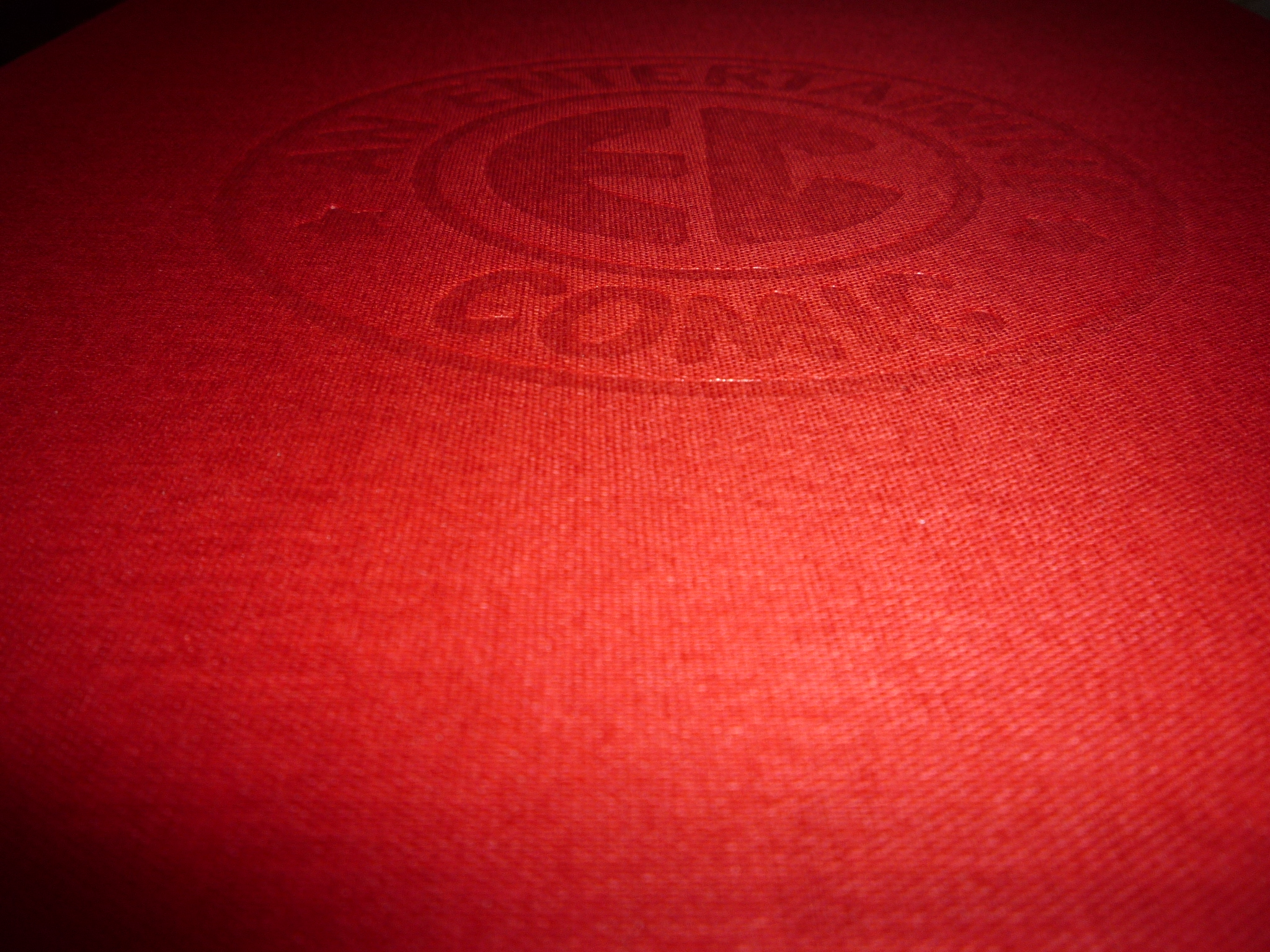 Книга под суперобложкой: красный коленкор с глубоким тиснением логотипа ЕС