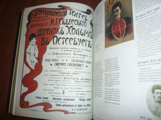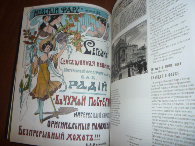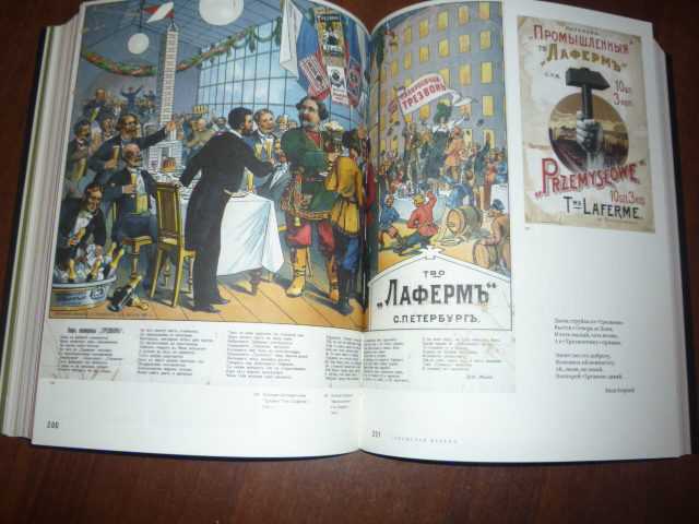 Плакаты сгруппированы по темам: Развлечения, Магазины, Здоровье, Спорт, Воздухоплавание и автомобили, Благотворительность. Это по содержанию, но помимо этого внутри еще цирк, кино, вино, конфеты. Всего около 350 афиш и плакатов. Книга выгодно отличается от предыдущих подобных изданий от "Контакт-Культуры" обширными историческими комментариями и объяснениями.