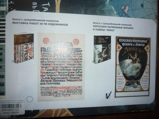 Вместо суперобложки использован свернутый плакат, причем часть тиража снабжена плакатом "Выставки работ художников", другая часть тиража — рекламой керосиновых фонарей.