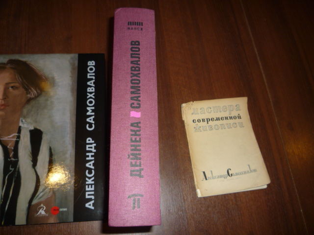 До кучи взял и два альбома с живописью Самохвалова: издание Русского музея 2014 года и сборник "Дейнека — Самховалов", издание "Манеж" 2020 года. Вторая книга интересная по задумке (сравнение и сопоставление двух художников по разным темам), но безобразна по печати (всё блеклое и тусклое, печатали в Латвии), и неудобна как справочник — перечень картин дан не по алфавиту или по хронологи, а по... последовательности встречаемости в этой книге.