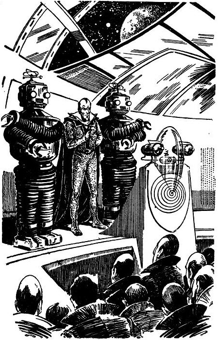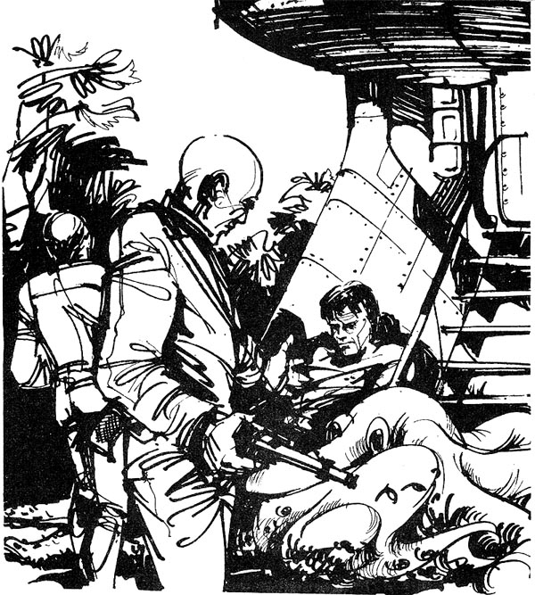 рисунок 5. Альфред Ван Вогт «Оружейники». Защитный костюм Хедрока отражает бластерный выстрел исполнительного директора. В принципе рисунок подходит и это было бы зачтено, но у предложившего конкурсанта этот вариант было мало правильных ответов на другие задачки. А нам зарубка на память — использовать более уникальные, однозначные иллюстрации, не дающие пространства для манёвра.