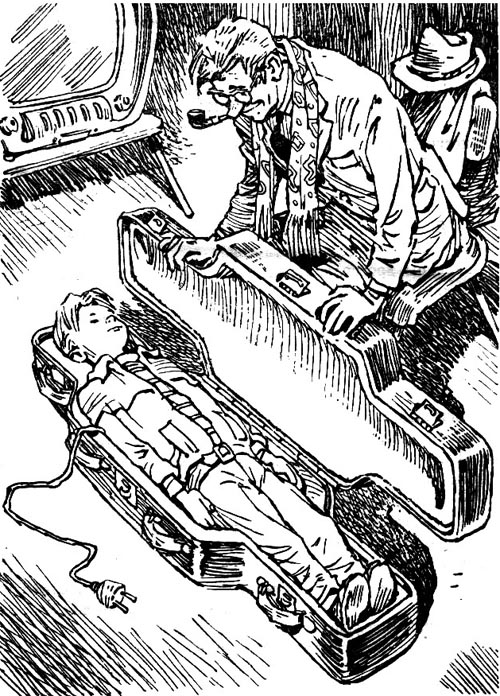 Несколько минут профессор смотрел на спящего. Нет, ни один человек не мог бы сразу догадаться, что перед ним кибернетический мальчик. Курносый нос, вихор на макушке, длинные ресницы… Синяя курточка, рубашка, летние брюки. Сотни, тысячи таких мальчишек бегают по улицам большого города.