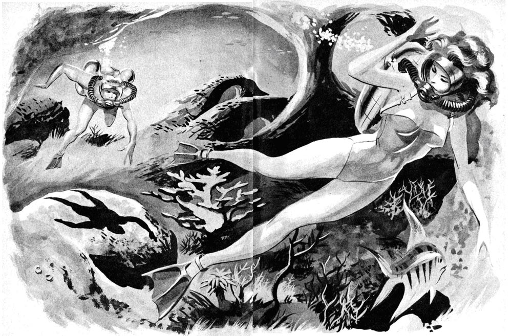 Подводная ферма ее отца находилась на глубине сотни футов, рядом с гигантской массой основания Гавайских островов. Быстрыми, мощными гребками девушка стала погружаться, уходя в зеленую глубину. Том ждет ее у коралловых пещер.