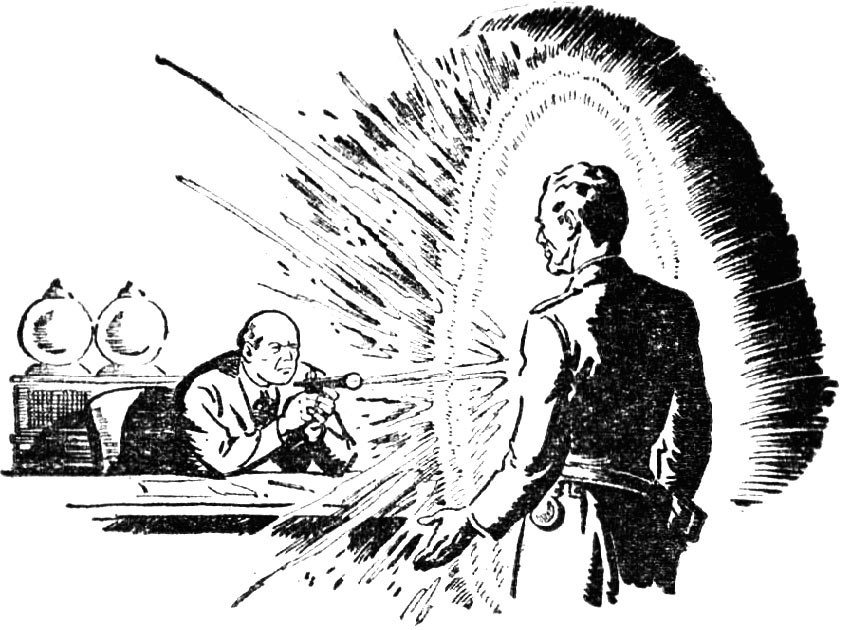 Тут технолог впервые заметил, что его гость окружен бледным сиянием. Он поднял бластер, прицелился и выстрелил.