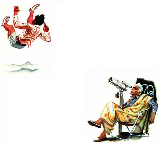 «Мой тайный порок», — говорил об этом Раджасинха с улыбкой и сожалением. Стареющий дипломат давно был не в силах подняться пешком на вершину Яккагалы; однако у него был способ компенсировать потерю. Много лет назад он приобрел малогабаритный телескоп и с его помощью мог блуждать по всему западному склону Утеса, мысленно поднимаясь по тропе, по которой в прошлом не раз всходил на вершину. Когда он глядел в окуляр, ему казалось, что он висит в воздухе около гранитной стены.