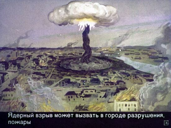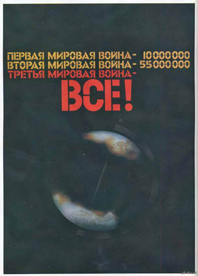 В начале 1980-х, под влиянием прогнозов Карла Сагана и, с советской стороны, группы Александрова, была распространена концепция "ядерной зимы" на 2-3 года, в случае обмена ядерными ударами со стороны сверхдержав. В США, Европе, и в СССР появились публикации о возможных смертельных последствиях грядущего рукотворного катаклизма, по телевидению выступали ученые с публицистами и рассказывали об ужасах нового тотального холокоста. Выпускались антивоенные плакаты, образцы которых приведены тут, выпускались учебные диафильмы, и т.п.