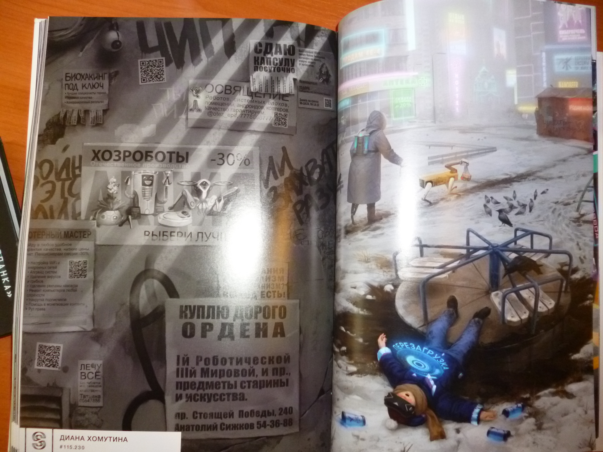 Если смотреть как на проект Будущего — выходит какой-то мрачный мир монстров, да он и не единый этот мирок, ибо 120 авторов, это не буриме даже, всех не свести в единую картинку, это даже не мозаика, стилистически художники разные. Можно рассматривать этот альбом SKYWAY Book просто как отечественный аналог европейского ежегодника EXPOSÉ: The Finest Digital Art in the Known Universe (выходил в 2003-2013 годах, 11 томов) или американского ежегодника «Spectrum: The Best in Contemporary Fantastic Art» (выходит с 1994 года, 27-й том выходит в ноябре).