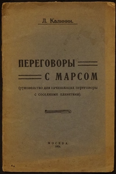 Подобный веселый упругий бред встречался и ранее, например почти сто лет назад, в Москве, в 1924 году, выпущена брошюра некоего Л.Калинина на тридцать страниц "Переговоры с Марсом: Руководство для начинающих переговоры с соседними планетами", в которой на полном серьёзе, в реалистическом ключе рассказывается о получаемых с Марса радиосигналах, и какие полезные сведения могут поведать землянам представители инопланетного народа.