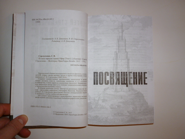 В этот авторский сборник вошли 40 рассказов автора, интервью, воспоминания об авторе, его переводы рассказов Кафки, Майкла Мак-Кенни, Жан-Луи Трюделя и др., научно-популярные статьи, ранее опубликованные в прессе, и завершает том библиографический указатель изданий С.Стрельченко.