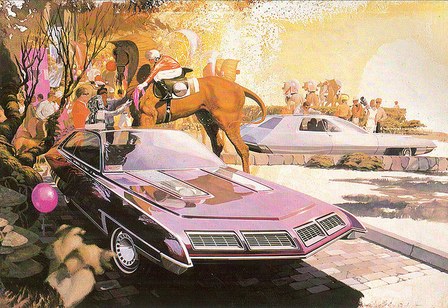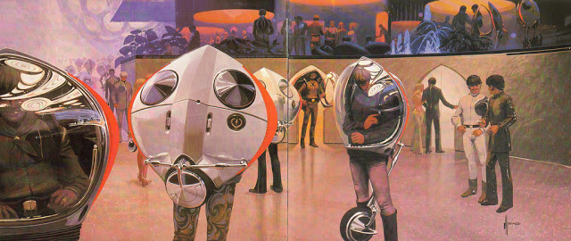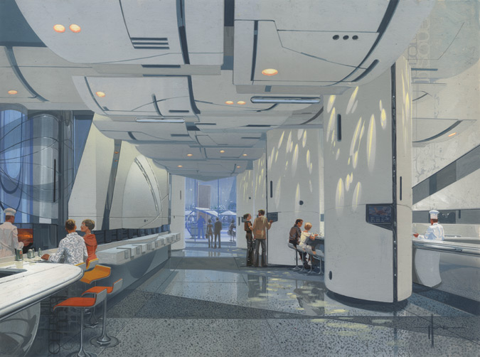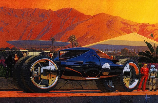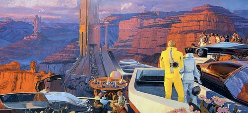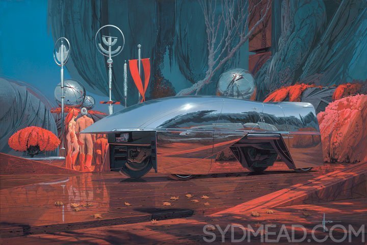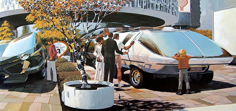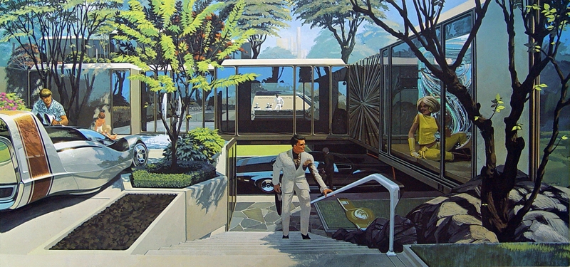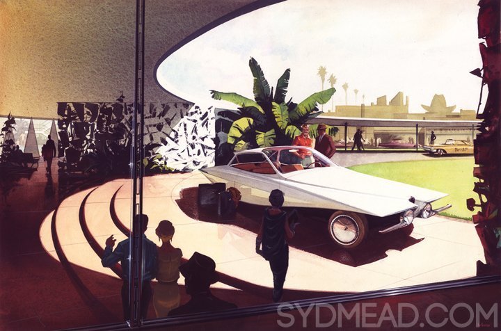 Футурист Сид Мид нарисовал своё представление о будущем. Уклон у него идет на новые автомобили (личный, общественный и грузовой транспорт представлены в избытке — сказывается долгая работа на "Форд"). Необычные одежды гармонируют с острыми обтекаемыми контурами автомобилей, стальной дизайн помещений повторяет костюмы украшенные хромированными деталями, пластиковая бытовая техника органично живет в модерновых комнатах. Взгляд С.Мида интересен тем что он профессиональный дизайнер, длительное время разрабатывавший внешний вид промышленно выпускаемых серийных вещей которые уже окружают людей в быту. Есть в этом надежда что не всё ещё так топорно как вокруг складывается.
