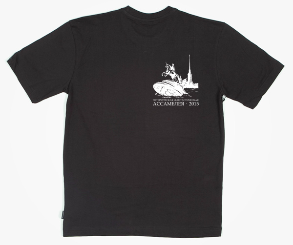 Слева на груди футболки расположена эмблема Петербургской фантастической ассамблеи. Выглядит это примерно вот так: