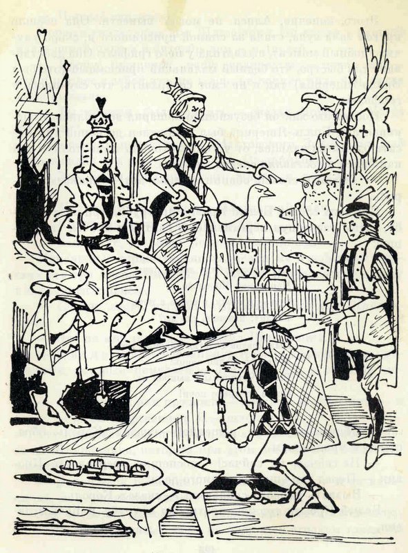 — Ваше величество! — крикнул Белый Кролик, поспешно вскочив с места. — Обнаружены новые доказательства! Только что найдена вот эта бумага.