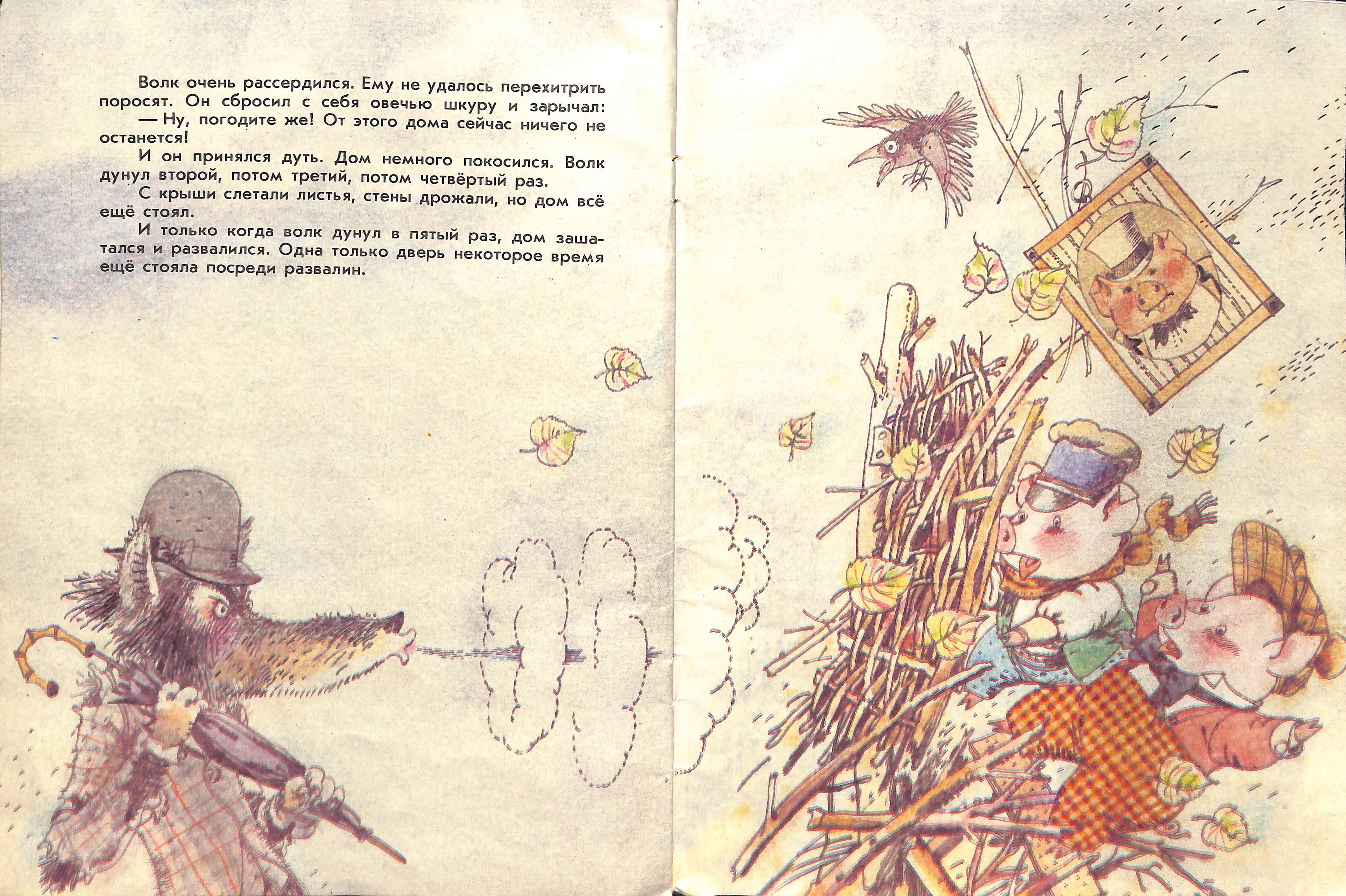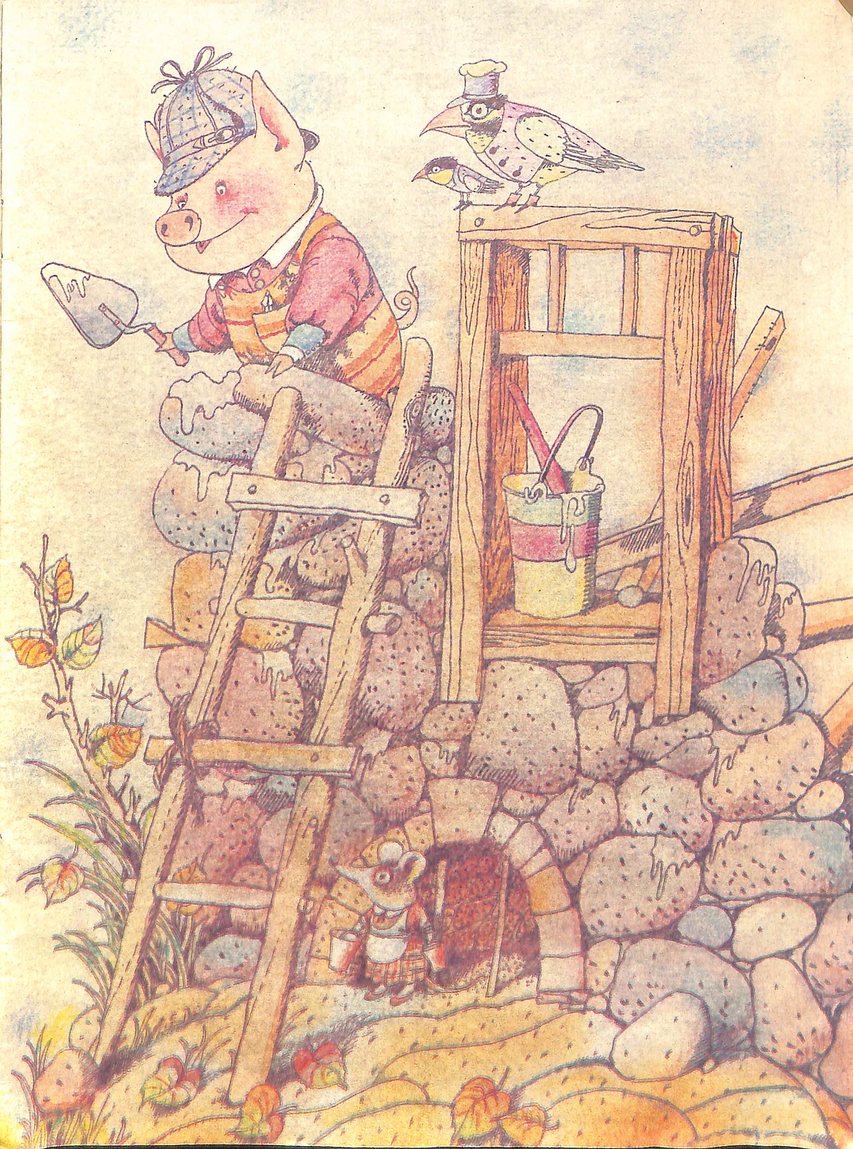 Продолжаем смотреть иллюстрации к "Трём поросятам" в обработке С.Михалкова. Сегодня — книжка, изданная в Ижевске в последний год существования СССР.