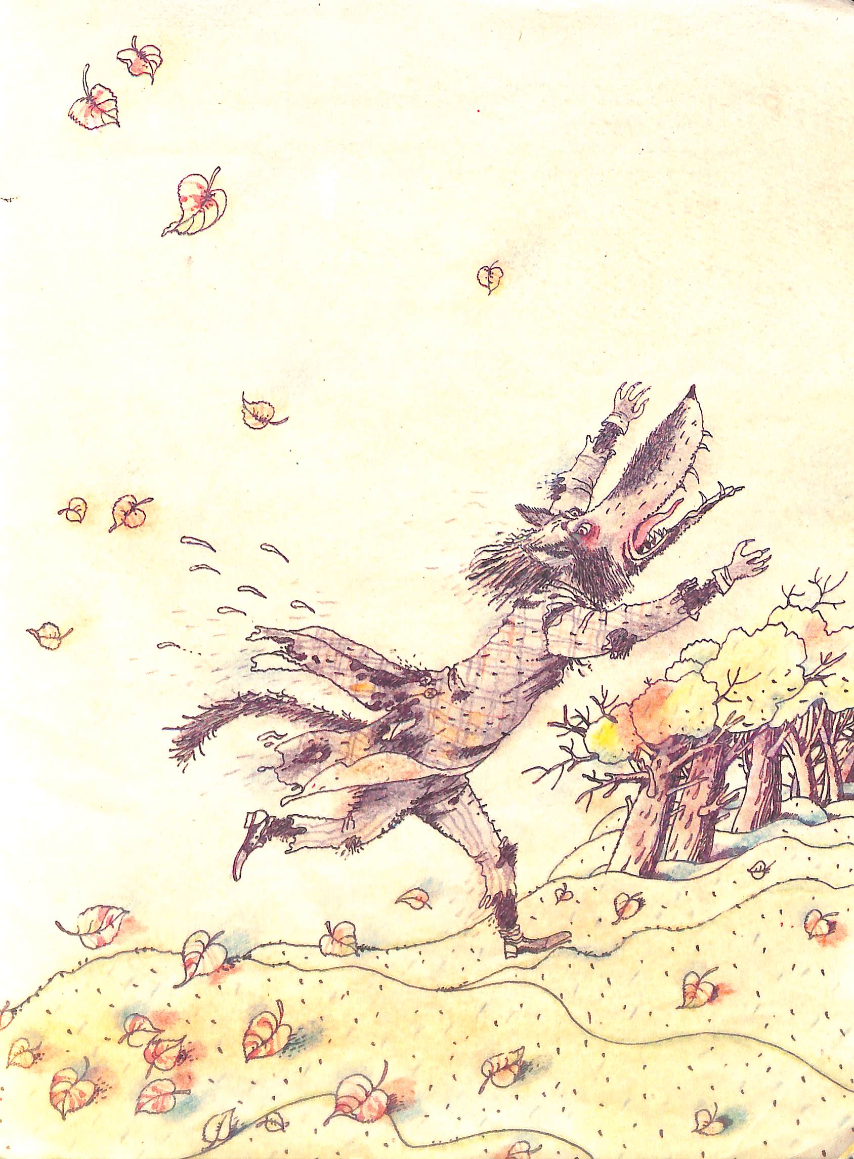 И всё-таки волк — центральный пейзаж сказки. Художники могут вволю пофантазировать. У Аникина волк — тоже буржуа, как и поросята, но поиздержавшийся.