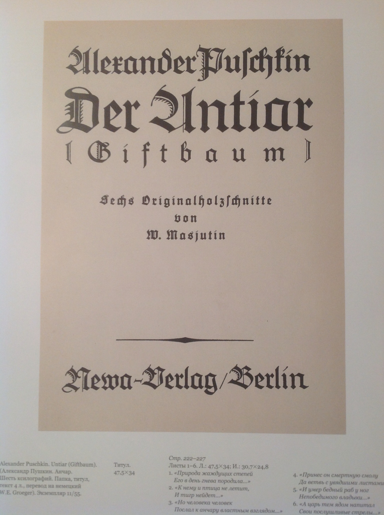 "Анчар" Масютина (это не книга, а папка с гравюрами) — редчайшее библиофильское зарубежное издание 1922 года. Вот его библиографическое описание.