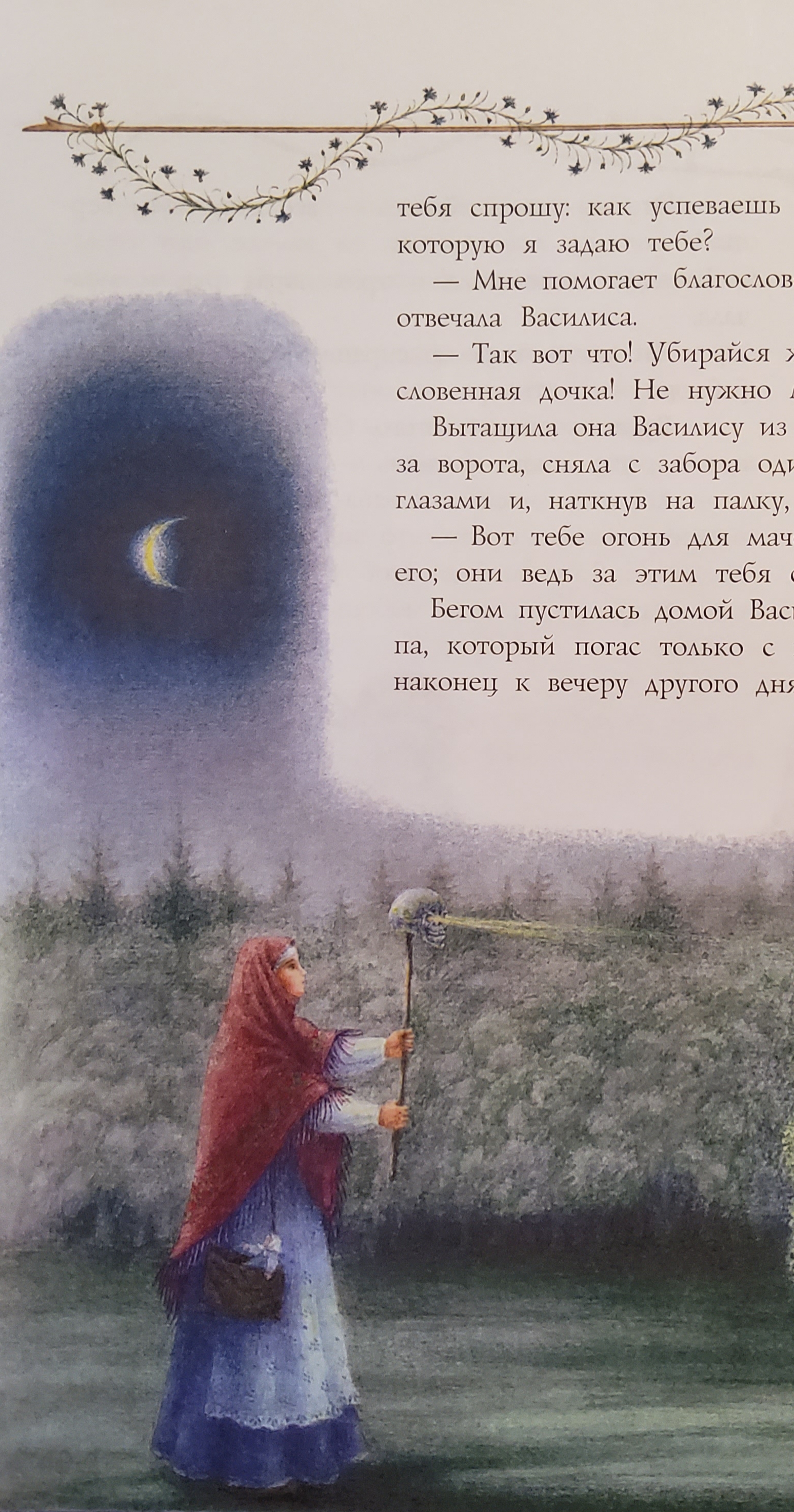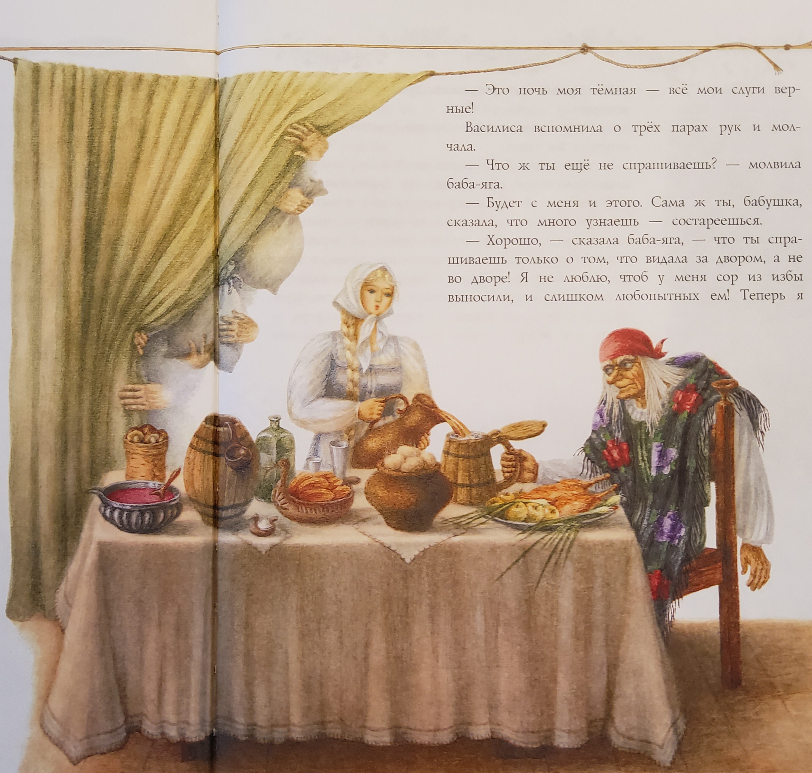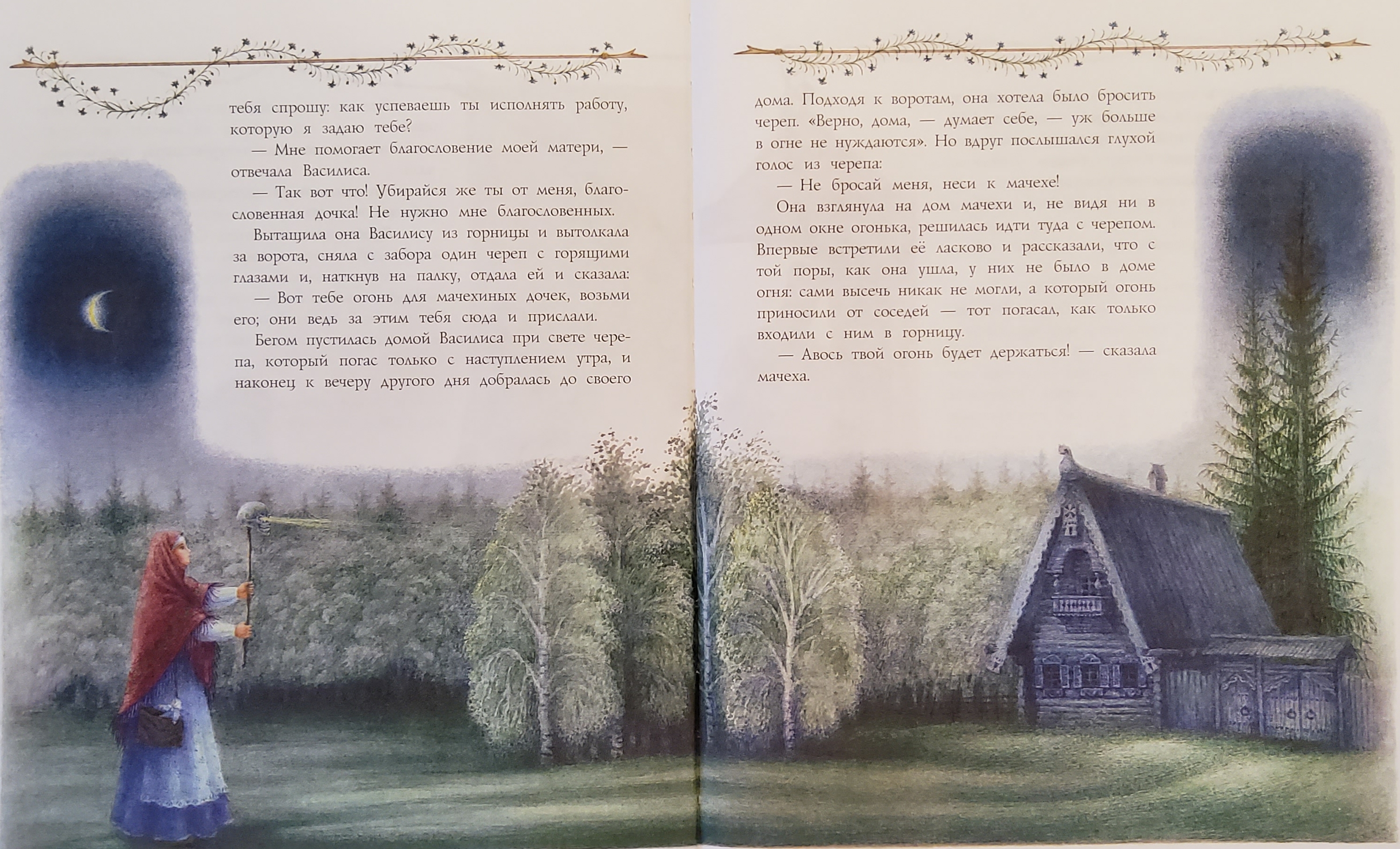 Сначала проникся уважением к тексту — настоящие сказки из академического собрания Афанасьева. С "Василисой Прекрасной" проблем нет — мы уже посмотрели множество изданий в обработке Афанасьева, но некоторые сказки из этого сборника в первоначальном виде лет сто не издавались. Потом уж и художницу реабилитировал. Уровень мастерства у Беляевой высокий, а если при этом рисунки вызывают неприятие, значит, они отличаются высоким уровнем самобытности (оригинальности).