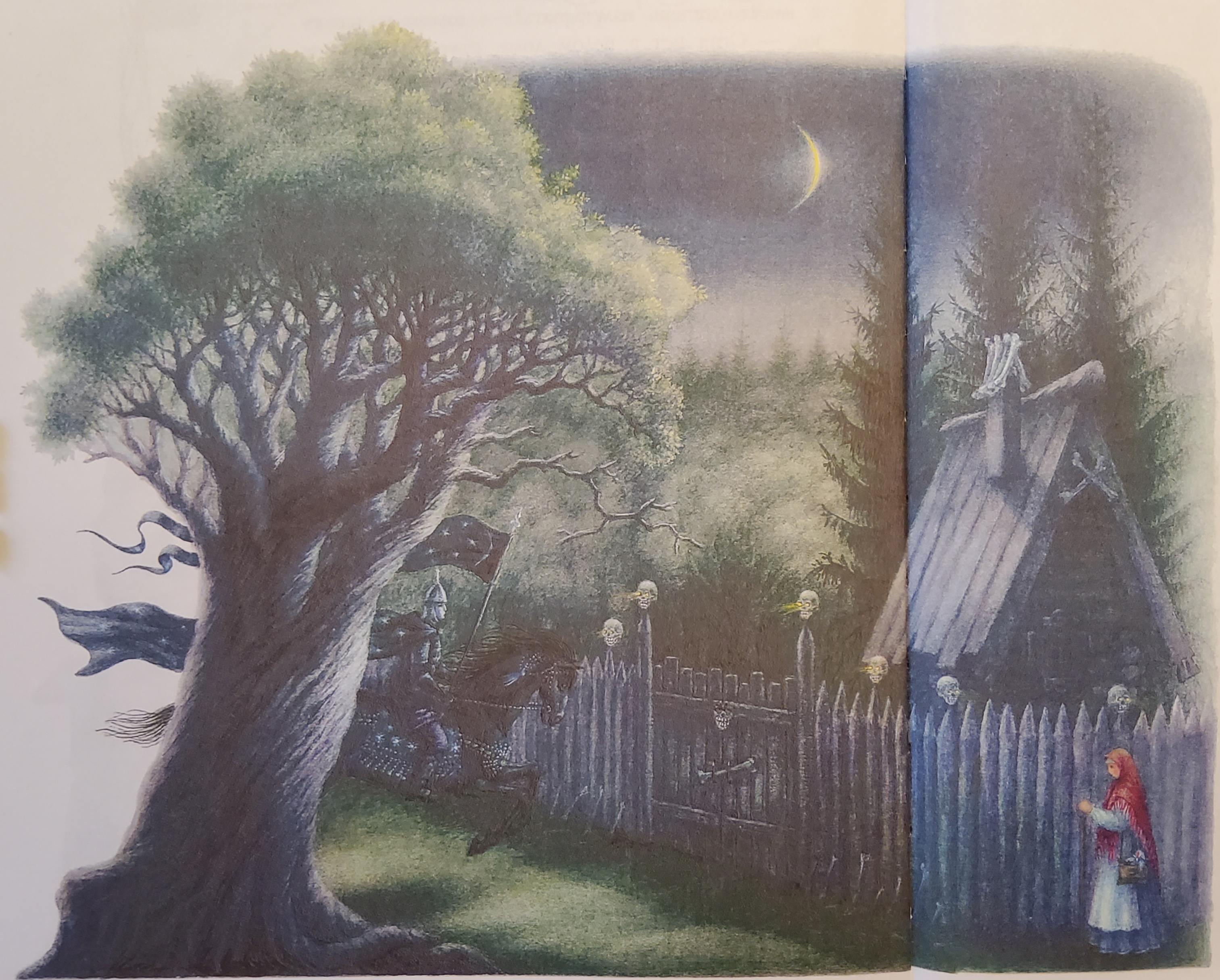 Василиса, хорошо укутанная, с достоинством несёт смертоносный череп домой (не бежит со всех ног в одной рубашонке, как у других художников).